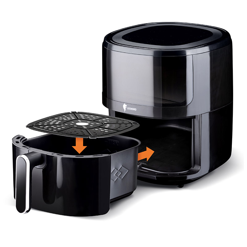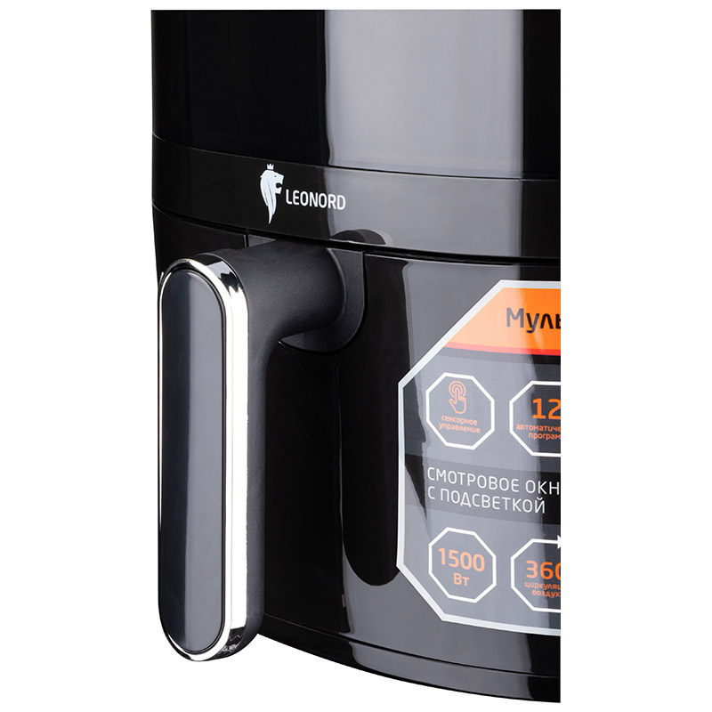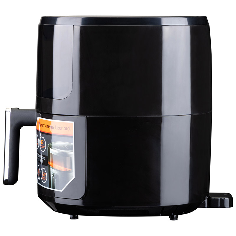 Мощность 1500 Вт Объем 5 л Чаша с антипригарным порытием Внутренний размер чаши: 21,7*20,6*11,6 см Сенсорная панель управления 12 автоматических программ приготовления Регулятор температуры 80-200ºС Таймер на 60 мин Отсрочка запуска Автоотключение Съемная решетка Ненагревающаяся ручка Смотровое окно с подсветкой Циркуляция воздуха 360ºС Книга рецептов в подарок Длина шнура 73 см