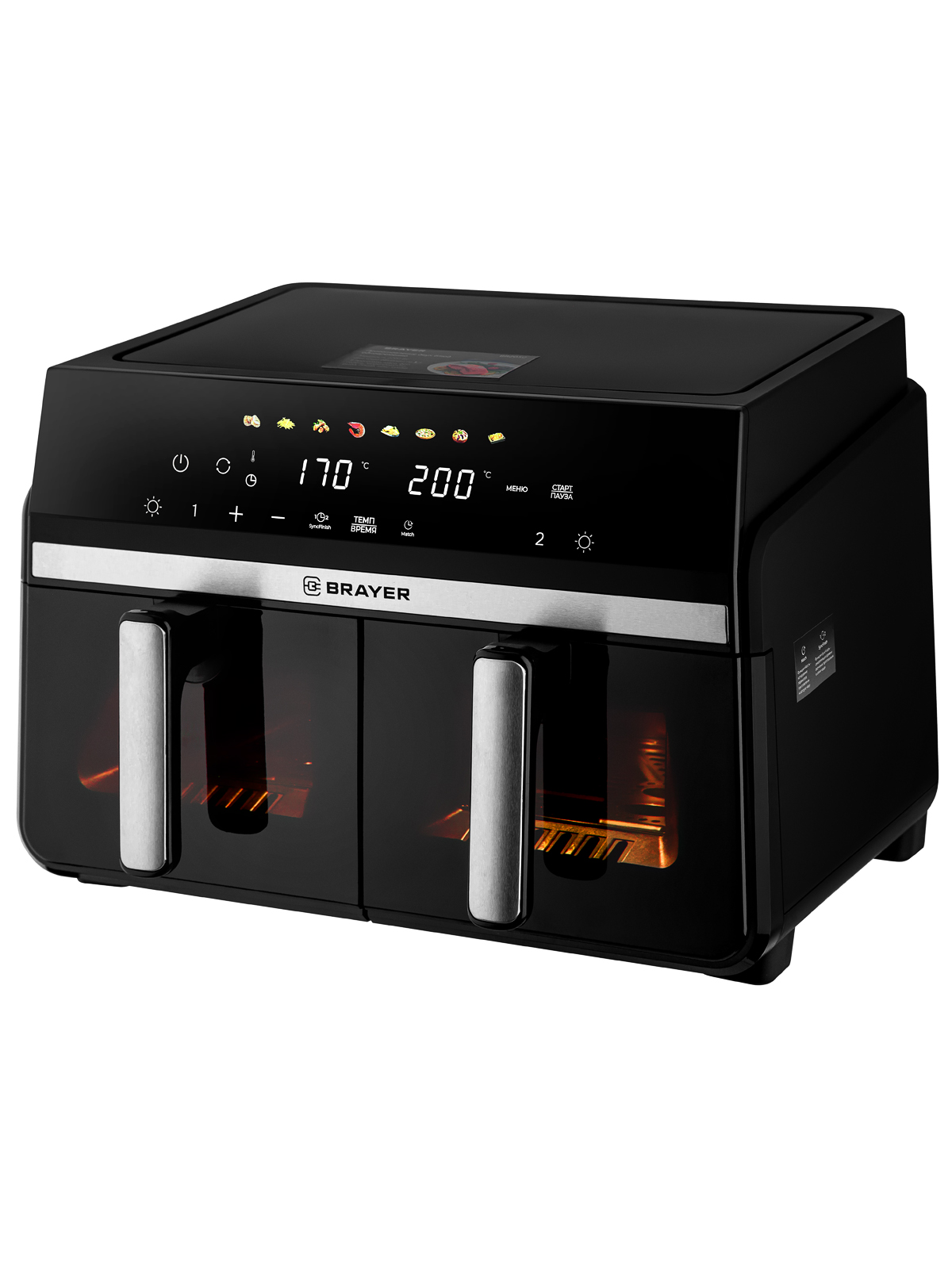 8 программ: мясо, фри, голень, морепродукты, рыба, пицца, кекс, сушка