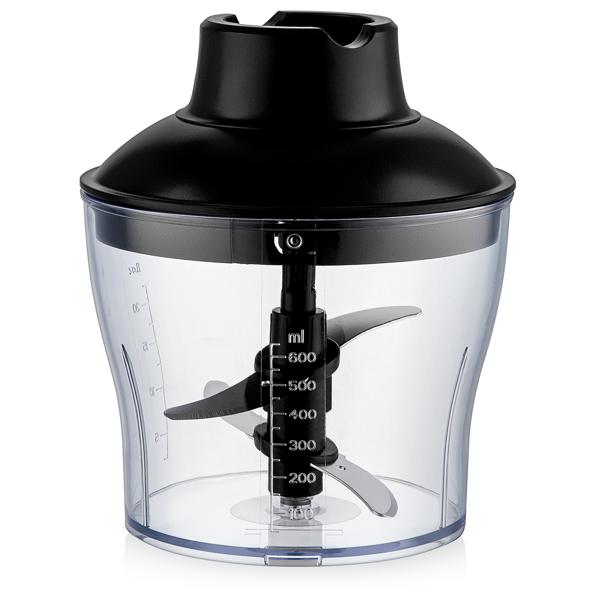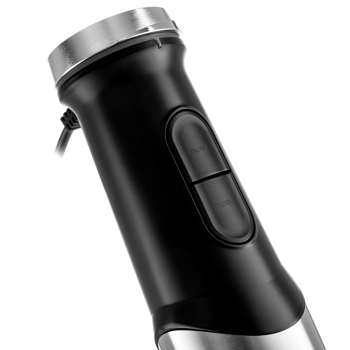 Мощность 1500 Вт Погружная часть блендера из нержавеющей стали с нейлоновым покрытием для предотвращения повреждения посуды Лезвия из титана Корпус из пластика, декорирован нержавеющей сталью Плавная регулировка скорости Насадка-венчик для взбивания Стакан для смешивания 800 мл Насадка-блендер для измельчения и смешивания Капучинатор Насадка-измельчитель объемом 600 мл Электропитание 220-240 В, ~ 50-60 Гц