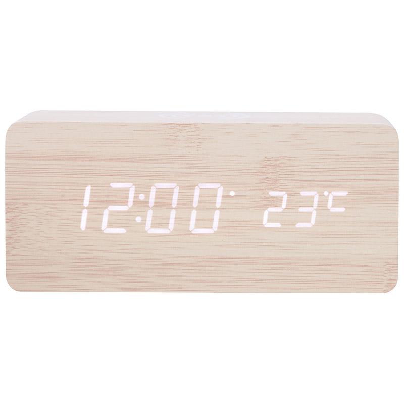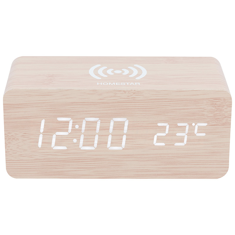 Мощность 6 Вт LCD дисплей Современный дизайн Крупный шрифт Два режима отображения Формат времени 12/24 часа 3 Будильника Показатель температуры (по Фаренгейту и Цельсию) Функция памяти Беспроводная зарядка (Мощность QI5 Вт) Три уровня яркости дисплея Функция энергосбережения Функция перезапуска Работа от USB Напряжение DC 5 В USB шнур в комплекте Работа от батареек 4*AAA (1,5 В) (в комплект не входят) Напряжение 6 В Размер 16х7х7 см Цвет дерево