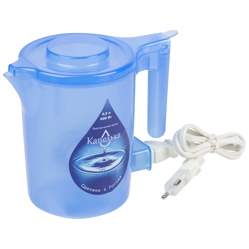 Мощность 600 Вт Объем 0,5 л Корпус из экологически чистого пищевого пластика Полупрозрачные стенки позволяют контролировать уровень воды и процесс его кипячения Нагревательный элемент – открытая спираль из нержавеющей стали S304 Длина шнура - 0,7 м Съёмный шнур для для удобства транспортировки Длина ручки - 9 см Время закипания - 4,5 мин Цвет синий Размер (Ш*В*Г) 15,5*13,5*9,5 см Гарантия 3 месяца Сделано в России Прекрасно подойдет для повседневного использования в путешествиях и командировках, дома, в офисе, в больнице или на даче