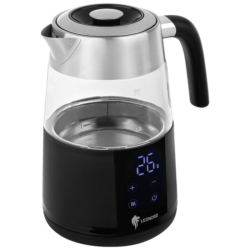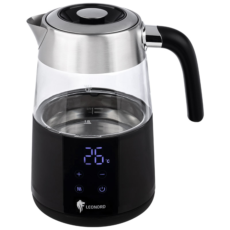 Мощность 1850-2200 Вт Объем 1,7 л Двойной корпус (стекло внутри, пластик снаружи) LED дисплей Сенсорное управление Регулировка температуры нагрева воды от 40℃ до 100℃,шаг 5℃ Поддержания температуры 2 часа Функция памяти Поворот на подставке 360° Защита от работы без воды Автоматический выключатель Цвет прозрачный Размер 19,7*15*25,2 Гарантия 2 года Длина шнура 74 см