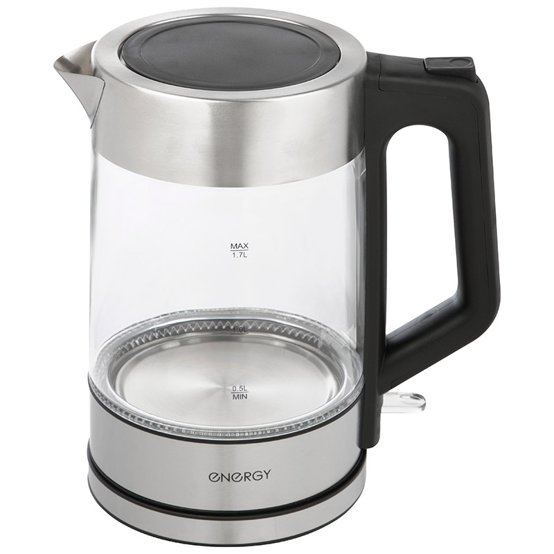Объем 1,7 л Корпус из термостойкого стекла Шкала уровня воды Внутренняя подсветка Закрытый нагревательный элемент из нержавеющей стали Поворот на подставке 360° Защита от работы без воды Автоматический выключатель Мощность 1850-2200 Вт Состав (материал): стекло, пластмасса, металл Длина шнура 73.5 см