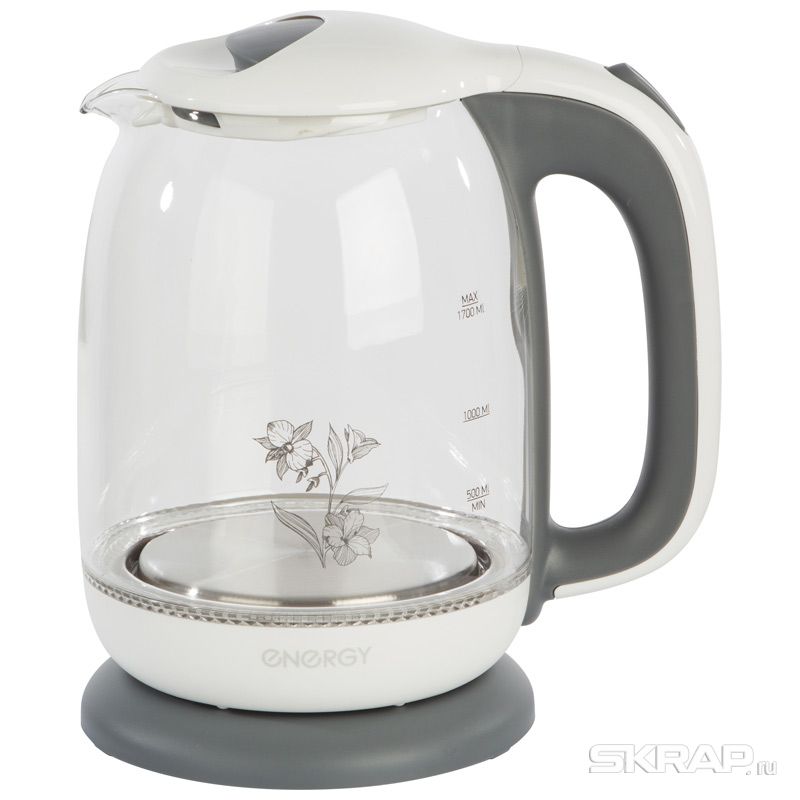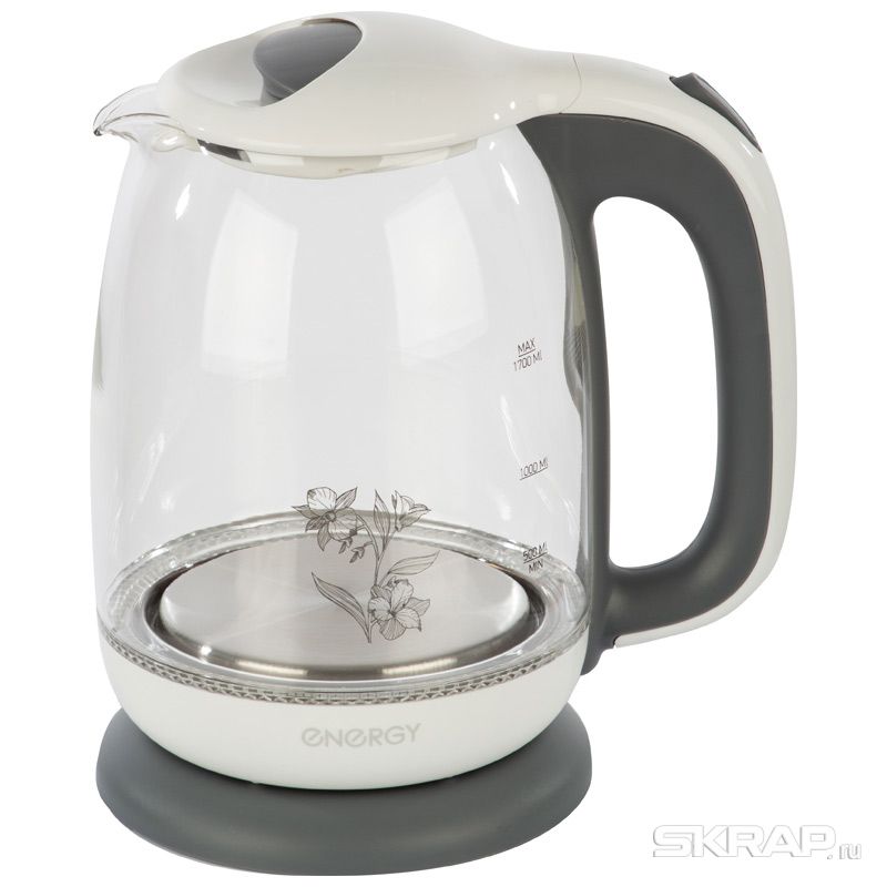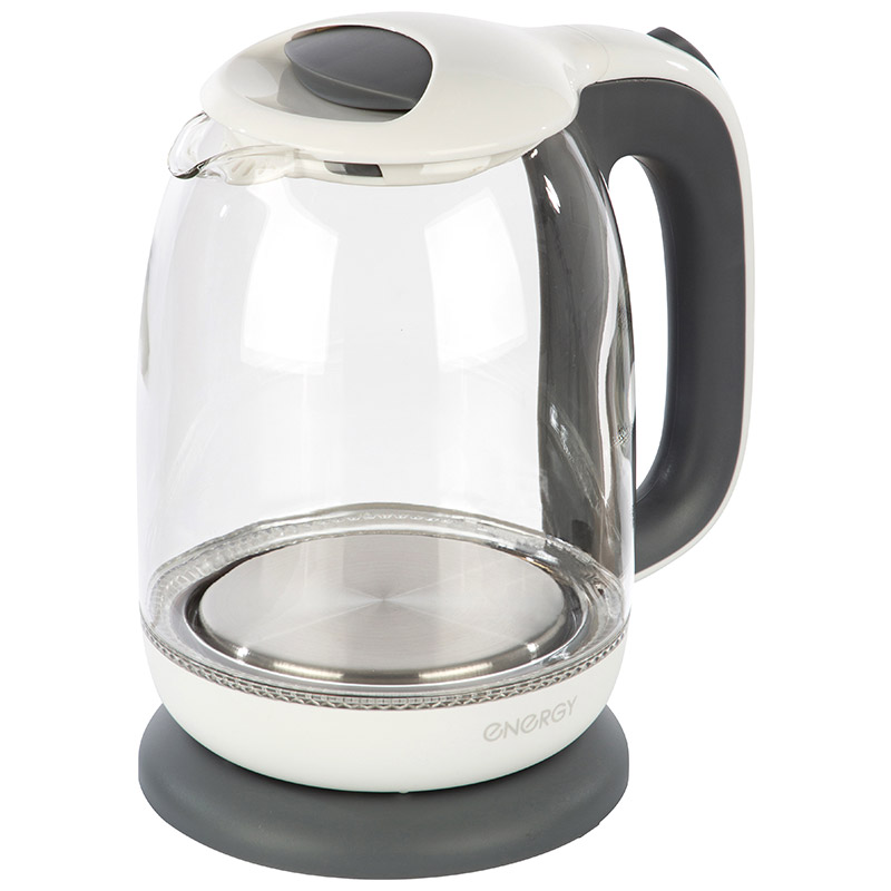 Объем 1,7 л Корпус из термостойкого стекла Шкала уровня воды Внутренняя подсветка Закрытый нагревательный элемент из нержавеющей стали Поворот на подставке 360° Защита от работы без воды Автоматический выключатель Место для хранения шнура Мощность 1850-2200 Вт Цвет бело-серый Длина шнура 73 см
