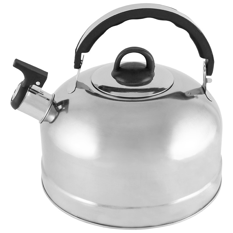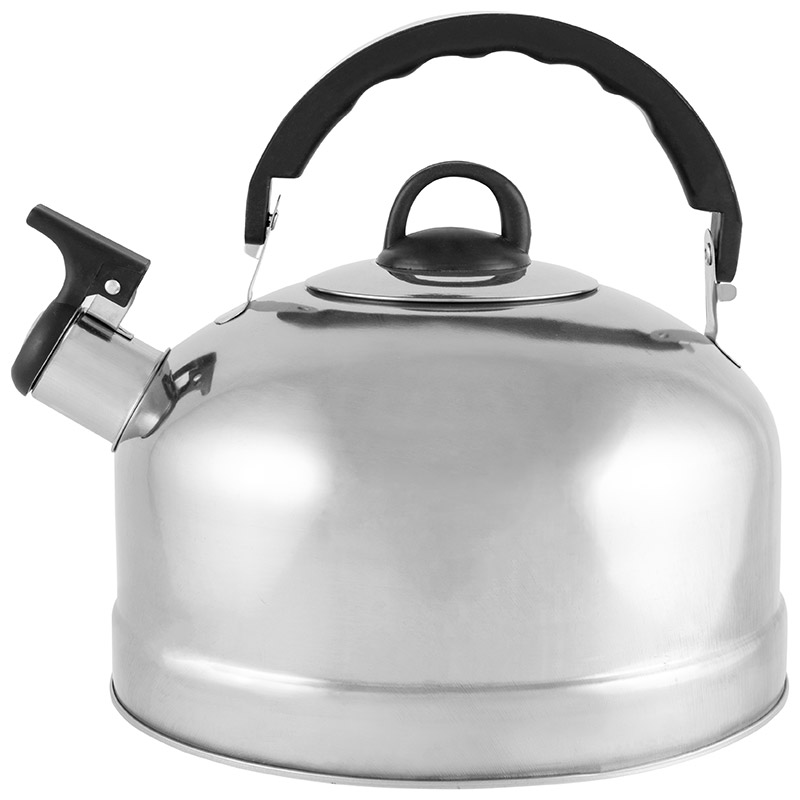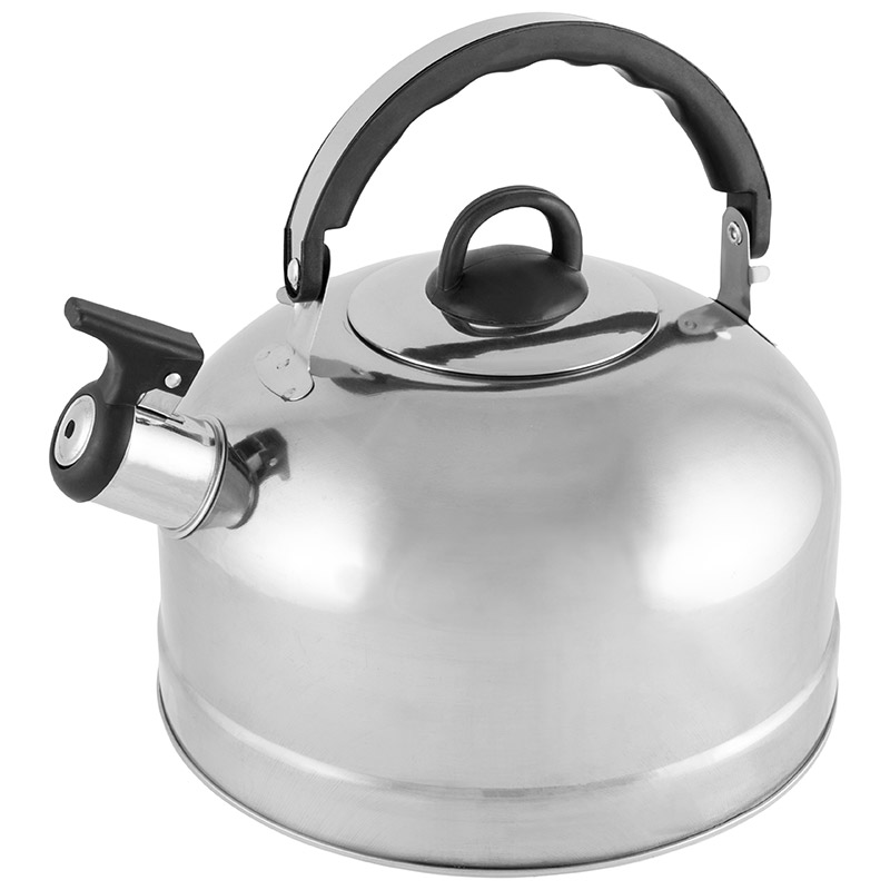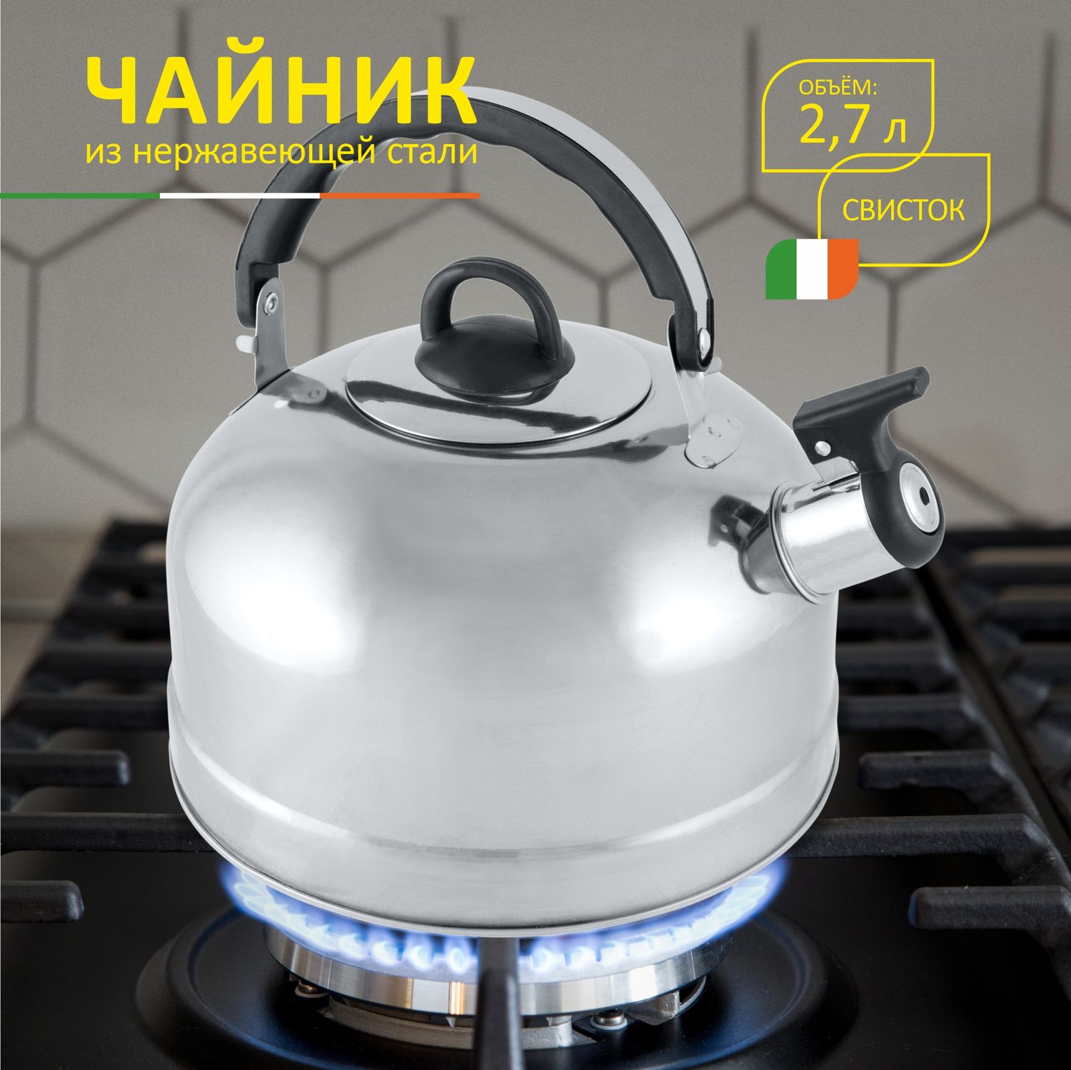 Чайник из нерж стали со свистком Casual, зеркальная полировка, литраж - 2,7 л, без тм Толщина стали - 0,25 мм Материалы - нерж сталь, пластик. Дно - однослойное. Подходит для всех типов плит.