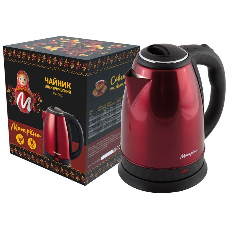 Объем 1,8 л Корпус из нержавеющей стали Закрытый нагревательный элемент из нержавеющей стали Поворот на подставке 360° Защита от работы без воды Автоматический выключатель Световой индикатор работы Место для хранения шнура Мощность 1500 Вт Цвет красный Длина шнура 59 см