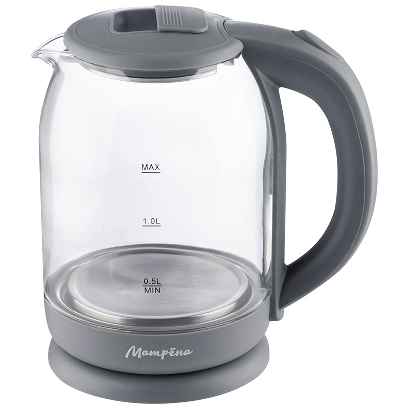 Объем 1,8 л Корпус из термостойкого стекла Шкала уровня воды Внутренняя подсветка Закрытый нагревательный элемент из нержавеющей стали Поворот на подставке 360° Защита от работы без воды Автоматический выключатель Место для хранения шнура Мощность 1500 Вт