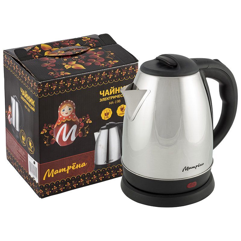 Объем 1,8 л Корпус из нержавеющей стали Закрытый нагревательный элемент из нержавеющей стали Поворот на подставке 360° Защита от работы без воды Автоматический выключатель Световой индикатор работы Место для хранения шнура Мощность 1500 Вт Длина шнура 60 см