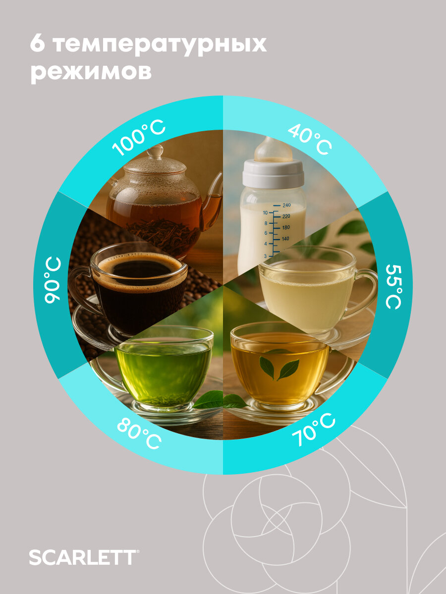 6 температурных режимов позволят подобрать наиболее удобный режимов для приготовления любимого напитка.