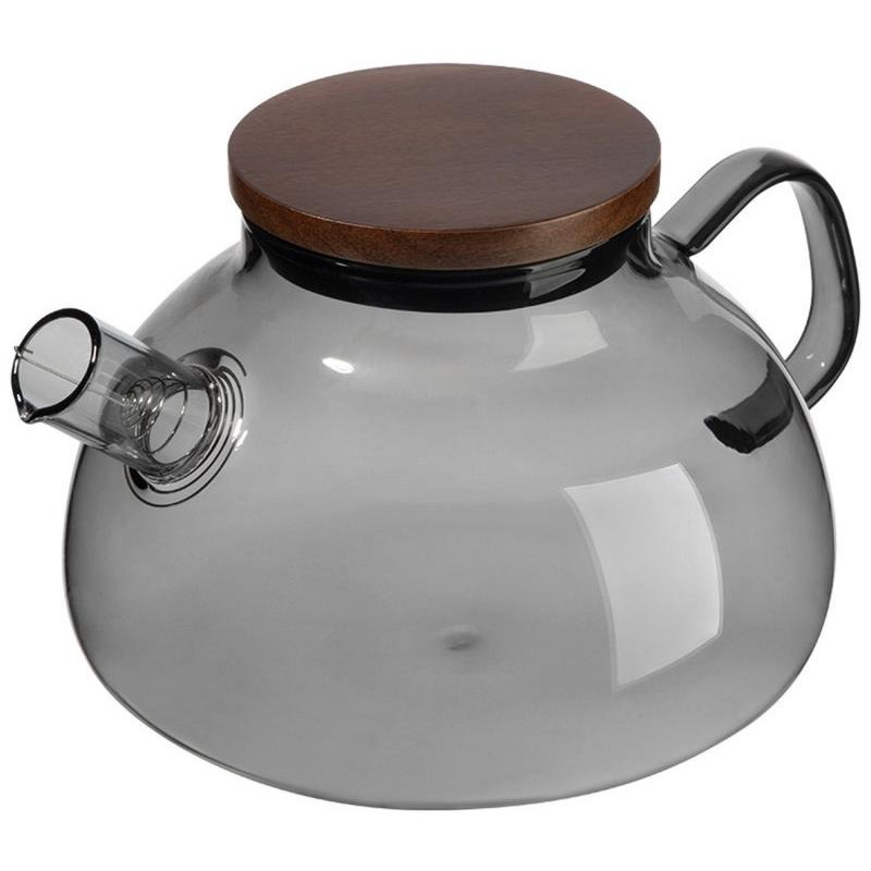 Чайник заварочный из цветного стекла, Aroma di Fiore, объём: 1л с тёмной ларикованной деревянной крышкой (дуб). боросиликатное стекло, цвет - чёрный.Фильтр-пружина на носике, выполнен из 304 нержавеющей стали.