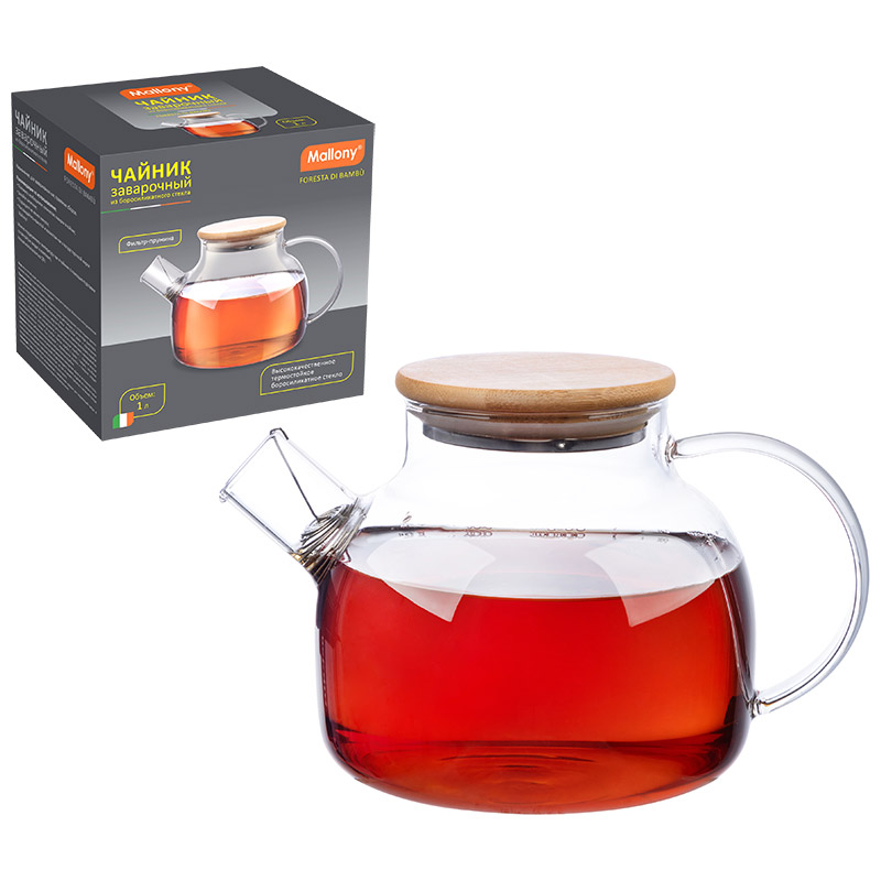Объем: 1 л, Материал: жаропрочное боросиликатного стекло, фильтр 304 нерж сталь, крышка из бамбука/силикона/нерж стали. Размер: 15,7х12х11 см.