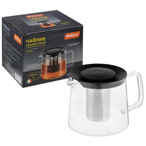 Чайник заварочный Mallony Skandi 1000мл из боросиликатного стекла, с прямоугольной ручкой