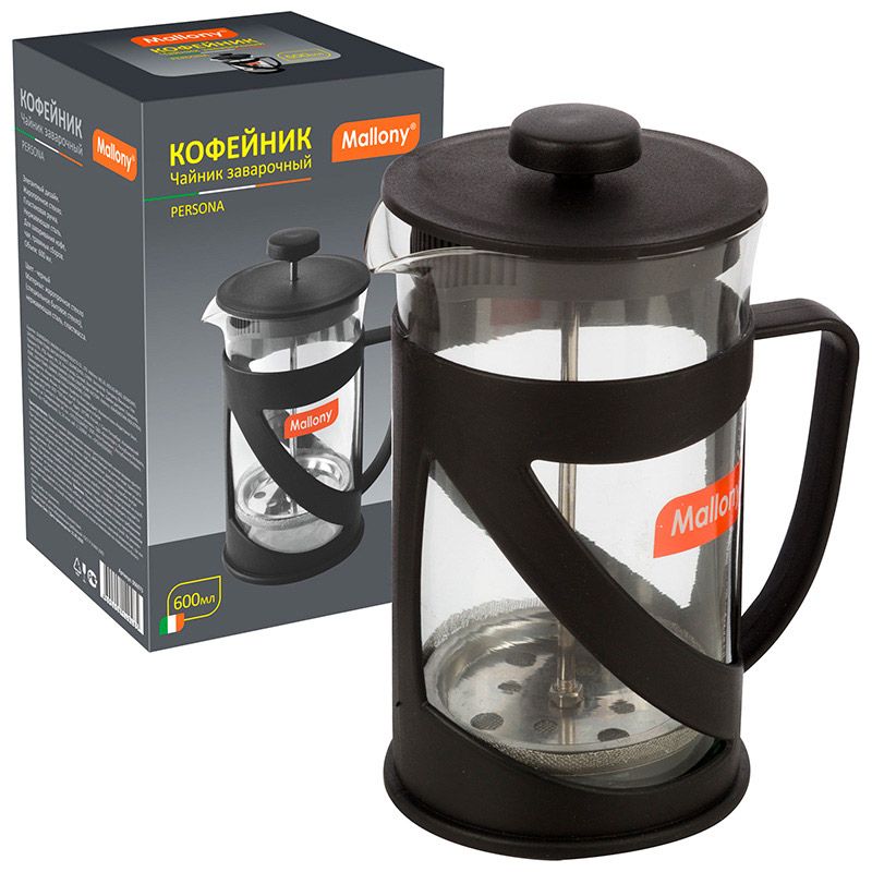 Материалы: жаропрочное стекло, пластмасса, нерж сталь. Объем 600 мл, фильтр/стержень из нержавеющей стали.