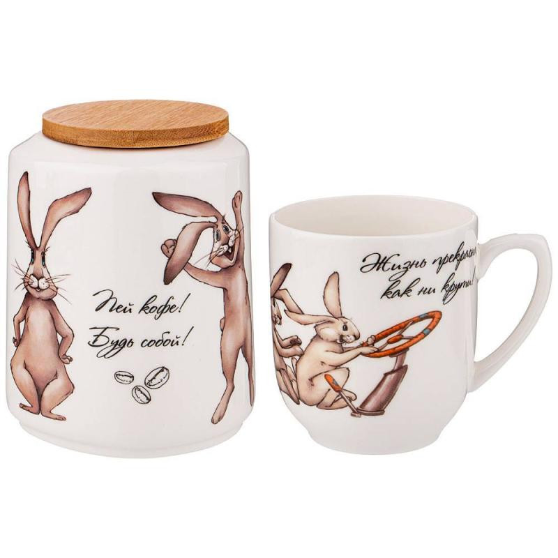 2 предмета, фарфор/дерево, кружка 300мл, банка с крышкой 600мл