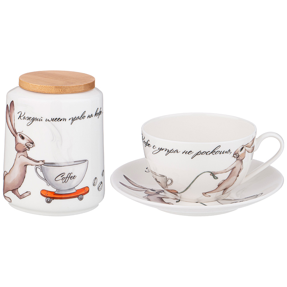 Комплектность: банка для чая с деревянной крышкой 600 мл - 1 шт., чашка 300 мл - 1 шт., блюдце - 1 шт.