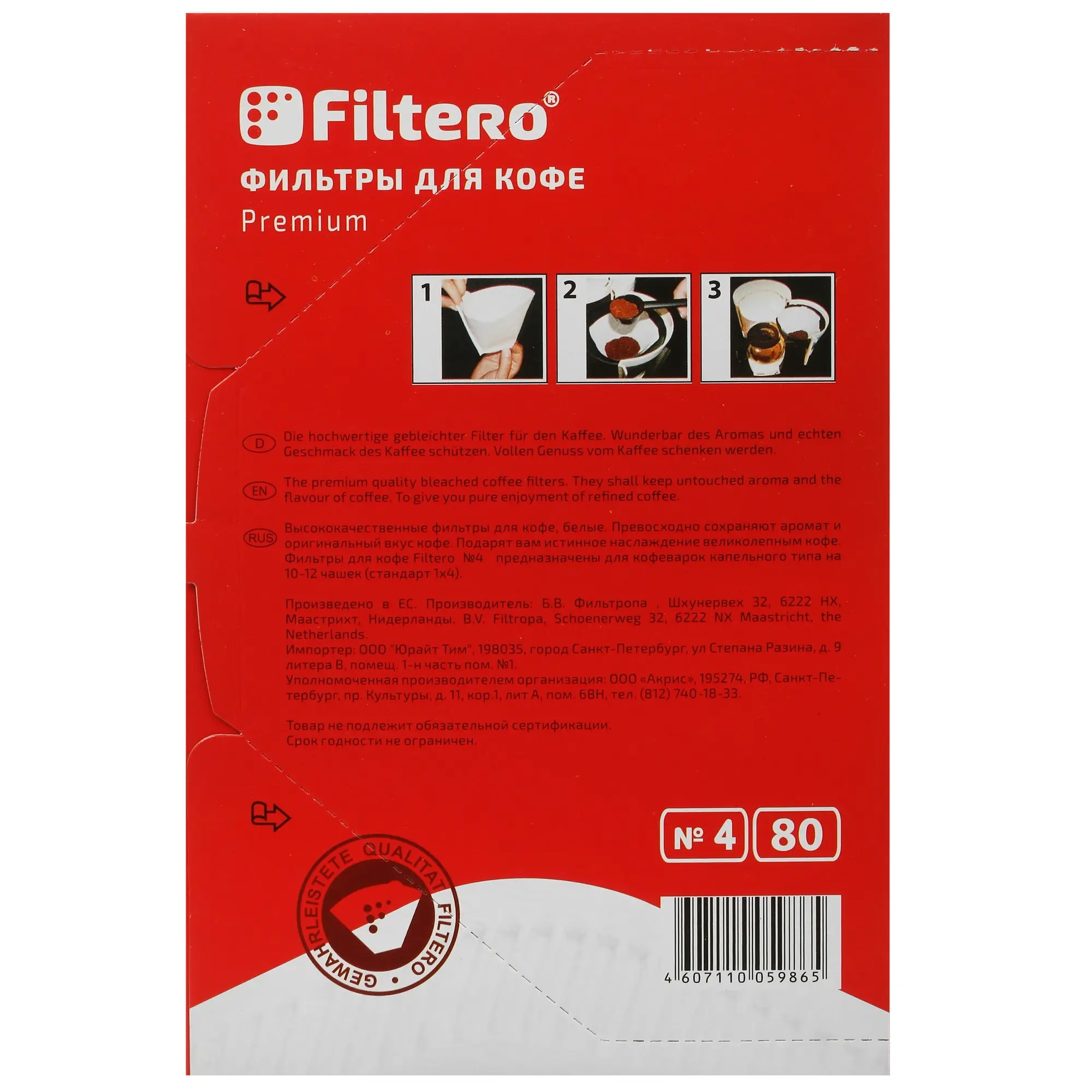 Filtero Premium №4 изготовлены из отбеленной кислородом бумаги без применения химических средств. Изделия оснащены прочными швами без клеевой основы. Одноразовые фильтры устойчивы к деформациям и разрушению в процессе использования. Отработанные изделия можно утилизировать как обычные бытовые отходы.