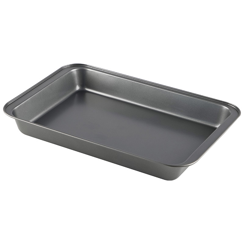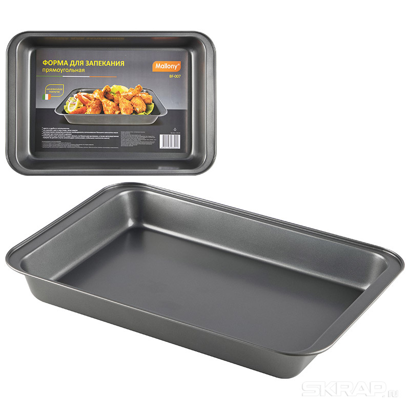 Размер: 42,5*29*5 см Толщина стали: 0,4 мм Материал: углеродистая сталь с антипригарным покрытием Форма для выпечки/запекания: * проста и удобна в использовании * не изменяет цвет и вкус пищи * легко моется * антипригарное покрытие исключает необходимость использования большого количества масла * подходит для мини печей и духовок * используются для запекания пищи в фольге, на бумаге для выпекания, а так же непосредственно в форме (в данном случае рекомендуем использовать небольшое кол-во масла)