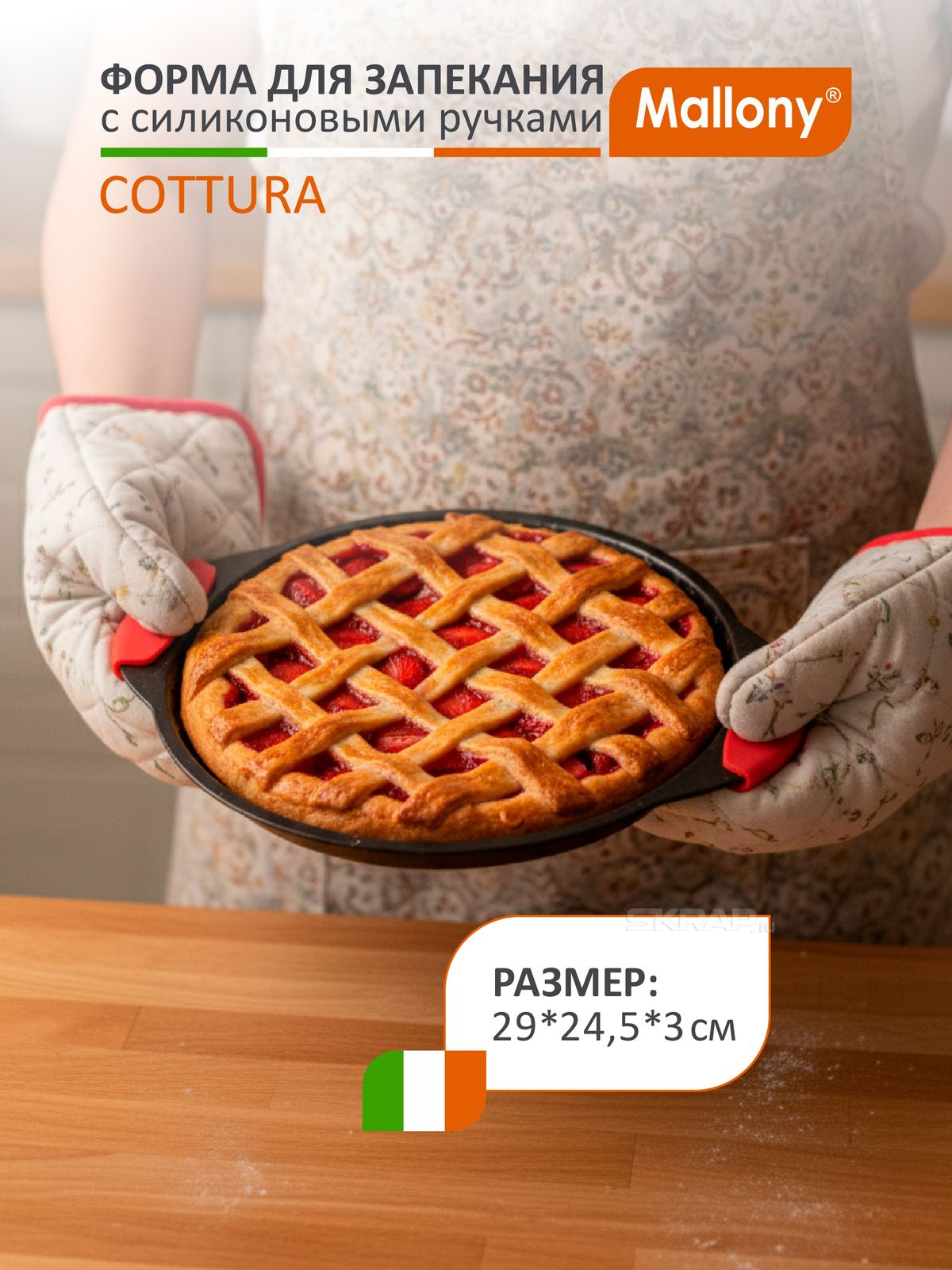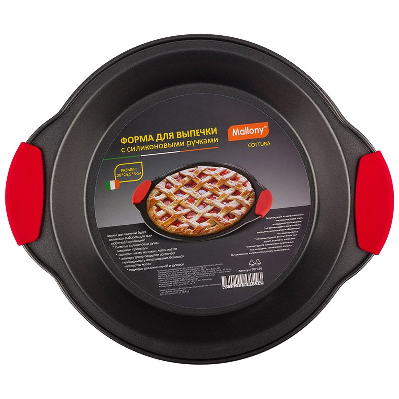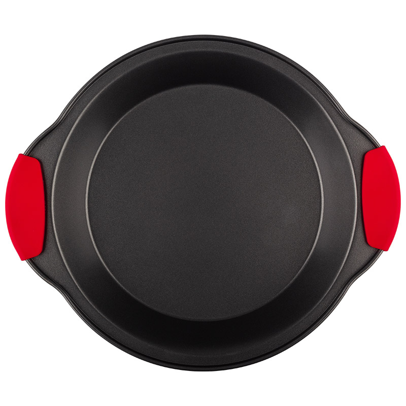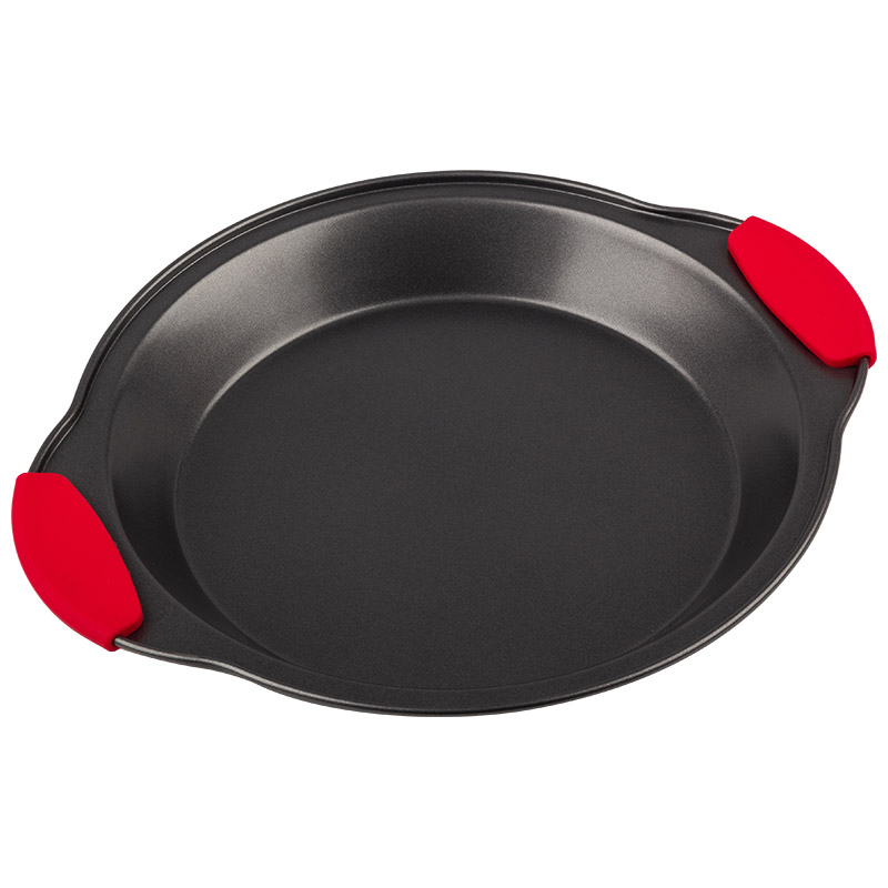 Форма для выпечки Антипригарное покрытие Силиконовые ручки Размер: 29*24,5*3 см Внутренний диаметр: 22 см Толщина: 0,4 мм Цвет: серый Материал: углеродистая сталь, силикон