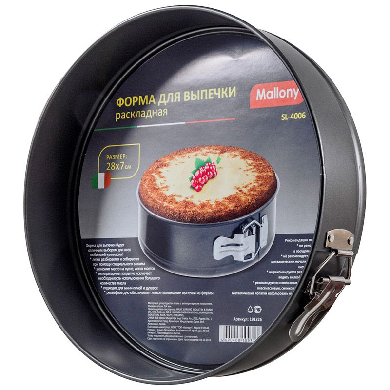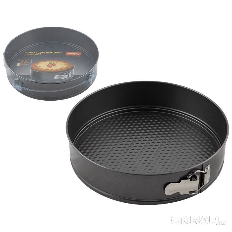 Размер: 28*7 см Толщина стали - 0,35 мм Цвет - серый Материал: углеродистая сталь Круглая форма для выпечки будет отличным выбором для всех любителей домашней выпечки. * легко разбирается и собирается при помощи специального зажима * экономит место на кухне * легко моется * антипригарное покрытие исключает необходимость использования большого количества масла * подходит для мини печей и духовок * рельефное дно обеспечивает легкое вынимание выпечки из формы