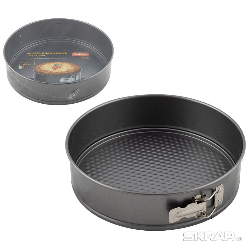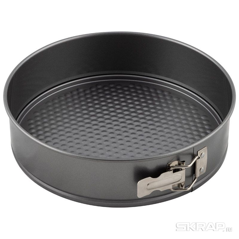 Размер: 26*7 см Толщина стали - 0,35 мм Цвет - серый Материал: углеродистая сталь с антипригарным покрытием Круглая форма для выпечки будет отличным выбором для всех любителей домашней выпечки. * легко разбирается и собирается при помощи специального зажима * экономит место на кухне * легко моется * антипригарное покрытие исключает необходимость использования большого количества масла * подходит для мини печей и духовок * рельефное дно обеспечивает легкое вынимание выпечки из формы