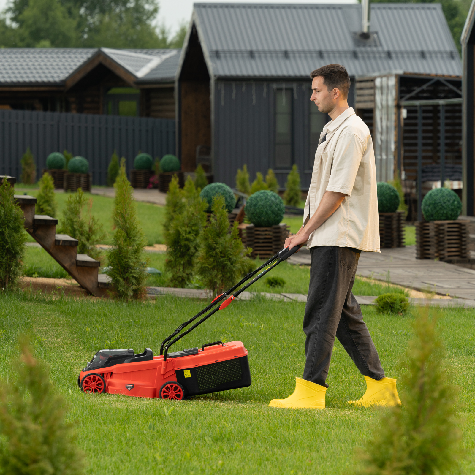 Небольшой вес 9,6 кг — пластиковая дека не утяжеляет конструкцию, газонокосилку легко направлять.