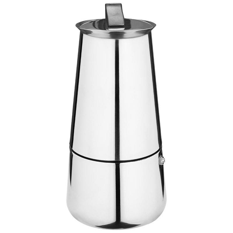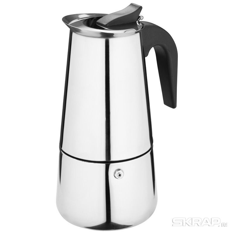 Гейзерная кофеварка ITALIA, объем 450 мл/9 чашек, из нержавеющей стали. Материал: нерж сталь, пластмасса, силикон, сталь, медь. Объем 450 мл, 9 чашек. Толщина стали 0,6 мм. Ручка пластиковая, черного цвета. Крышка из стали. Силиконовое уплотнительное кольцо. Медный клапан. Упаковка цветная коробка. Подходит для индукции. Не рекомендуется мыть в посудомоечной машине.