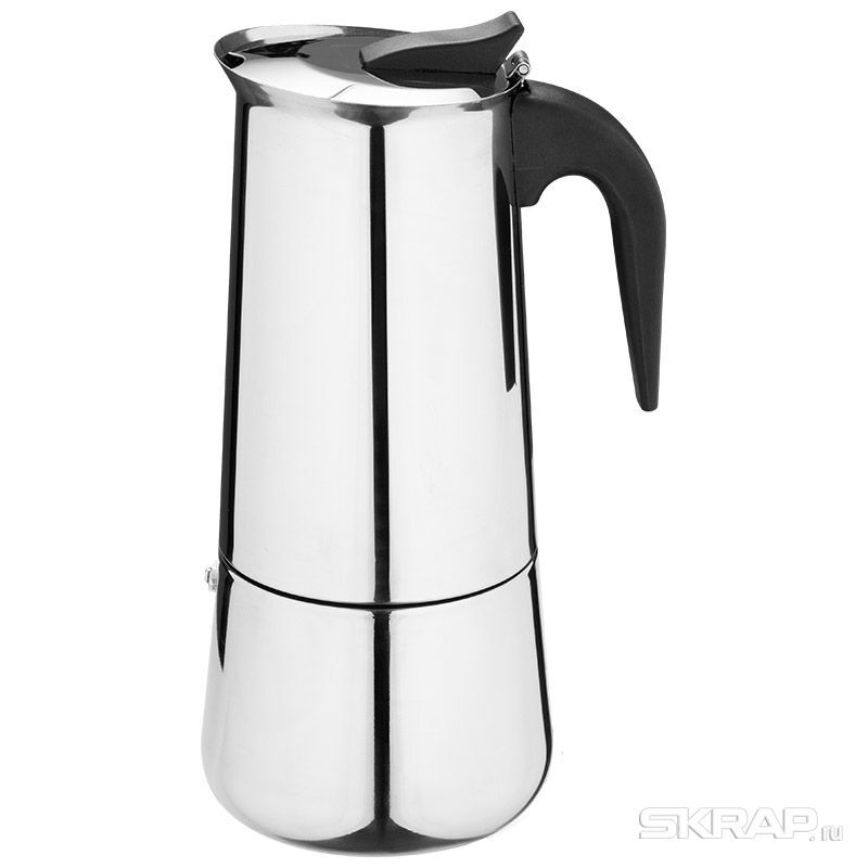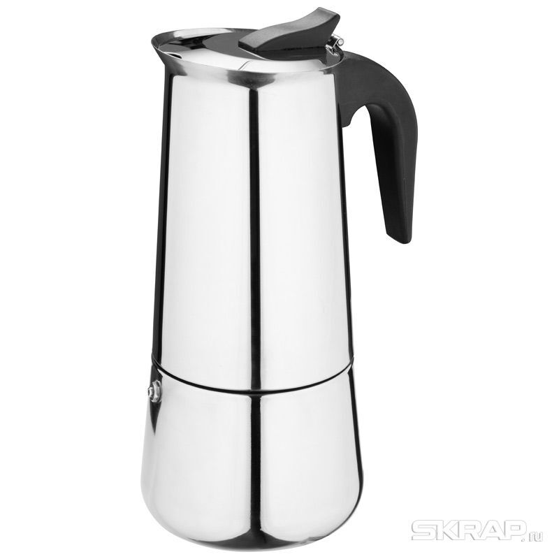 Гейзерная кофеварка ITALIA, объем 600 мл/12 чашек, из нержавеющей стали Материал: нерж сталь, толщина 0,6 мм, пластмасса, силикон, сталь, медь. Объем 600 мл, 12 чашек. Ручка пластиковая, черного цвета. Крышка из стали. Силиконовое уплотнительное кольцо. Медный клапан. Упаковка цветная коробка. Подходит для индукции.