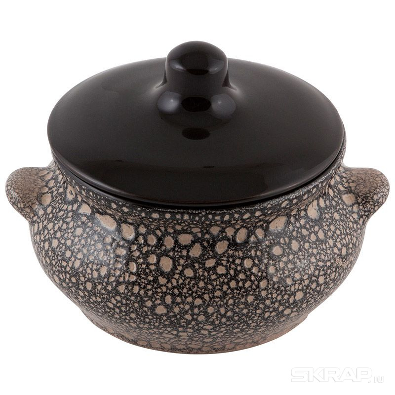 Объем: 500 мл. Диаметр: 13 см. Высота: 9,5 см. Материал: керамика Наличие крышки: с крышкой Дополнительно: с ручками Горшок для запекания очень удобной формы. Идеально подходит для одной порции. Уникальные свойства красной глины и толстые стенки изделия обеспечивают «эффект русской печи» при приготовлении блюд. Это значит, что еда будет очень вкусной, сочной и здоровой. Покрытие внешне напоминает мрамор