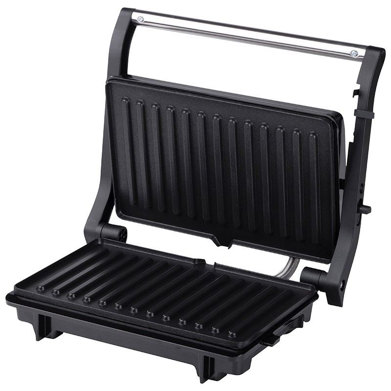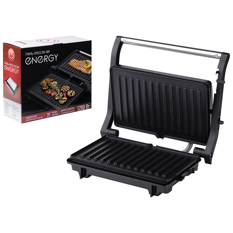 Мощность 1200 Вт Световой индикатор работы и нагрева Сверхпрочное антипригарное покрытие Ненагревающиеся ручка Корпус из металла и термостойкого пластика Режим Барбекю-раскрытие на 180 градусов Защита от перегрева Размер панелей 23*14,5 см
