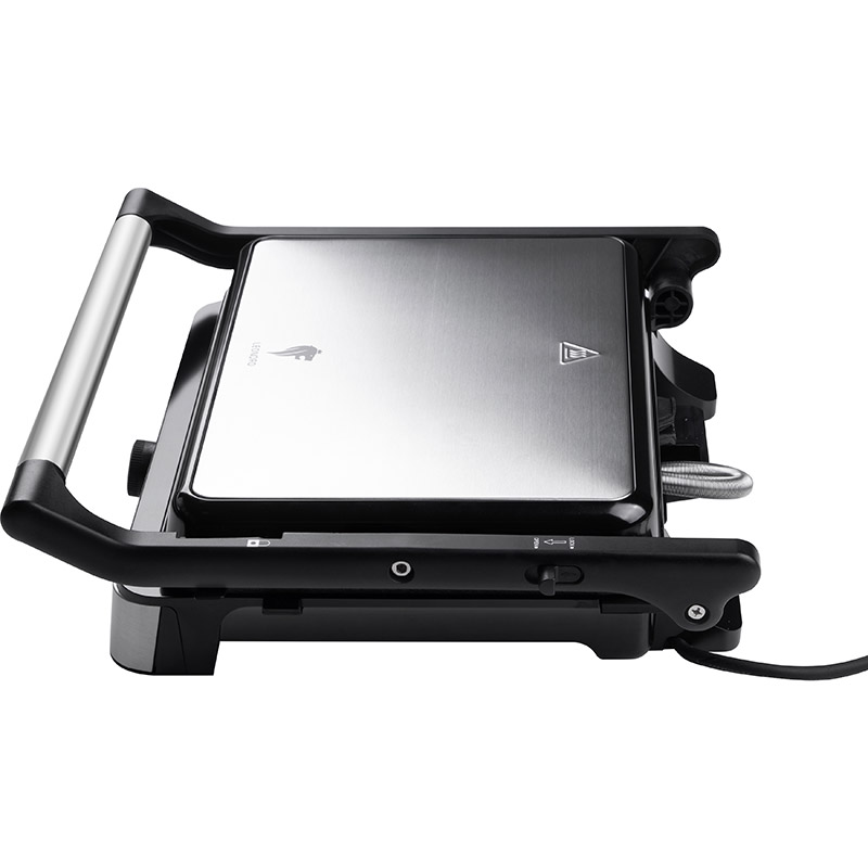 Мощность 2100 Вт Световой индикатор работы Размер панелей 29*23 см Сверхпрочное антипригарное покрытие Touch Pro5 Режим Барбекю-раскрытие на 180 градусов Регулятор температуры Ненагревающиеся ручка Корпус из металла и термостойкого пластика Защита от перегрева Вертикальное хранение Поддон для сбора жира Длина шнура 75 см Напряжение 220-240 В, 50-60 Гц