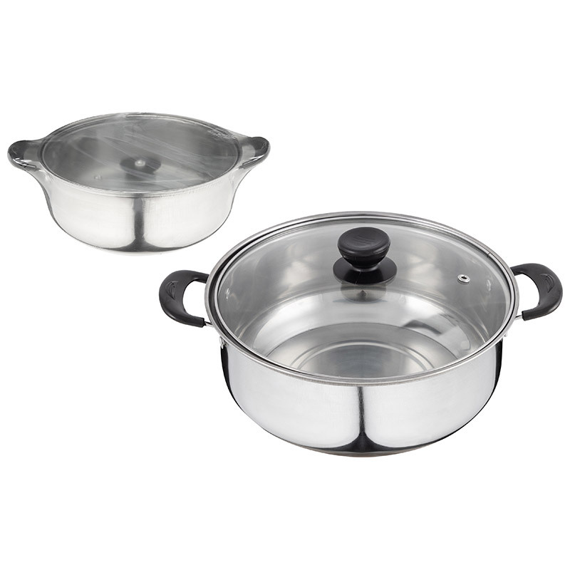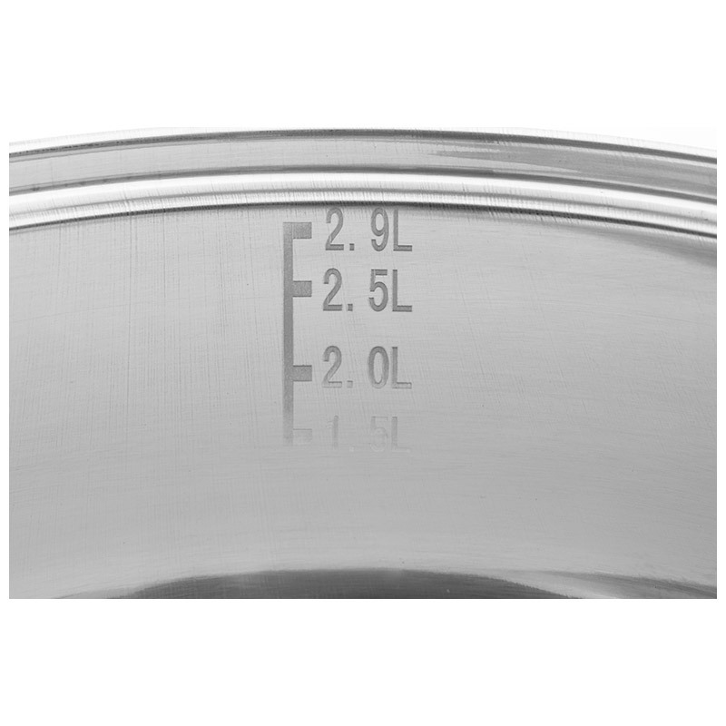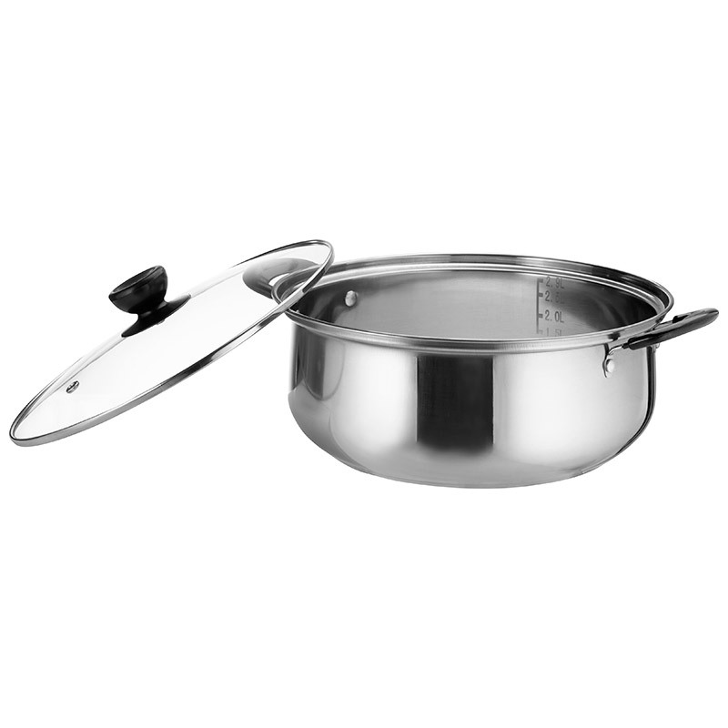 Кастрюля Promo, объем 2,9 л, из нержавеющей стали с крышкой из жаропрочного стекла Материал: нерж сталь, жаропрочное стекло, нейлон. толщина стенок 0,3 мм, объем 2,9 л. Размер: 23,5 (диаметр)*9,5 (высота без крышки) см. Размер с ручками: 30 см. Высота с крышкой: 13 см. Дно однослойное. Подходит для всех типов плит. Не рекомендуется мыть в посудомоечной машине. Зеркальная полировка корпуса внутри и снаружи. Отметки литража. Крышка из жаропрочного стекла С-типа с отверстием для выпуска пара. Ручки: нерж сталь+ нейлон.