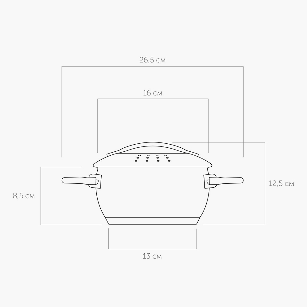 1.4л, 16см, нерж.сталь, крышка стекло/нерж.сталь со встроенным дуршлагом, складные ручки нерж.сталь, маркировка литража, подходит для всех типов плит
