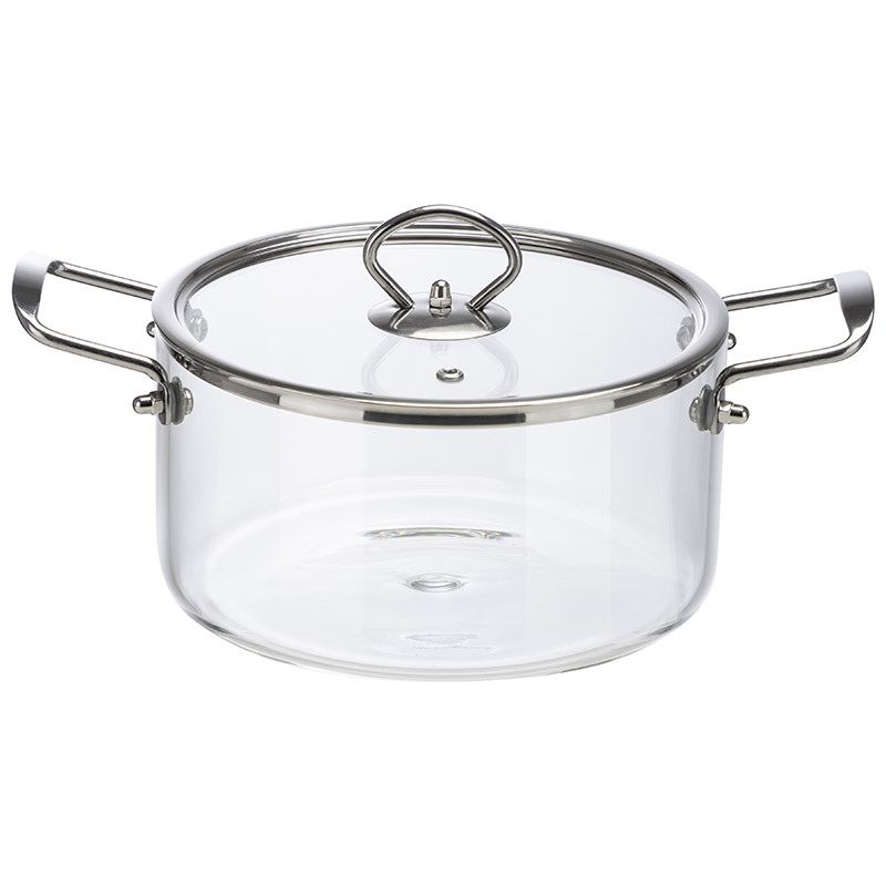Кастрюля ITALIANO, объем 3,5 л, из жаропрочного боросиликатного стекла с крышкой с пароотводом Материал: жаропрочное боросиликатное стекло, нерж сталь 201. Размер: 19,5*13,5 см, объем: 3,5 л. (макс. объём 3,64л) Диаметр 19,5 см. Толщина стенок: 5,12 мм. Подходит для всех типов плит (включая газовые), кроме индукционных. Можно использовать в посудомоечной машине. Можно использовать в духовом шкафу.