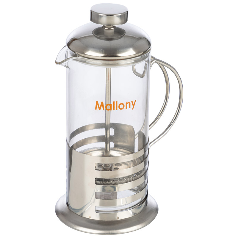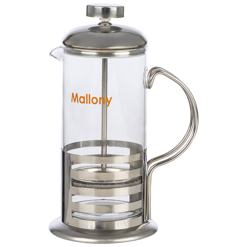 Кофе-пресс/чайник заварочный PRIMO 350мл Размер: 12*8,5*18,5 см, вес 250 гр, материал: нерж сталь 201, толщина стали (0,3 мм), толщина стекла - 1,8 мм. фильтр/стержень 201 сталь, жаропрочное стекло, с лого,