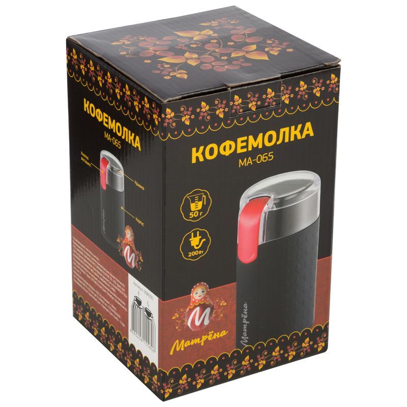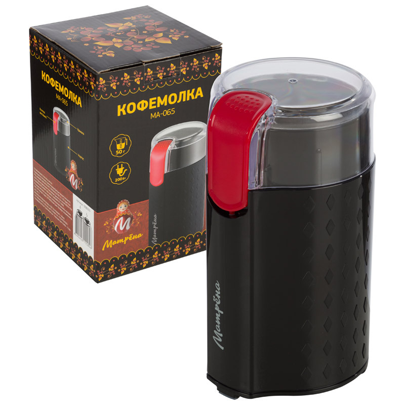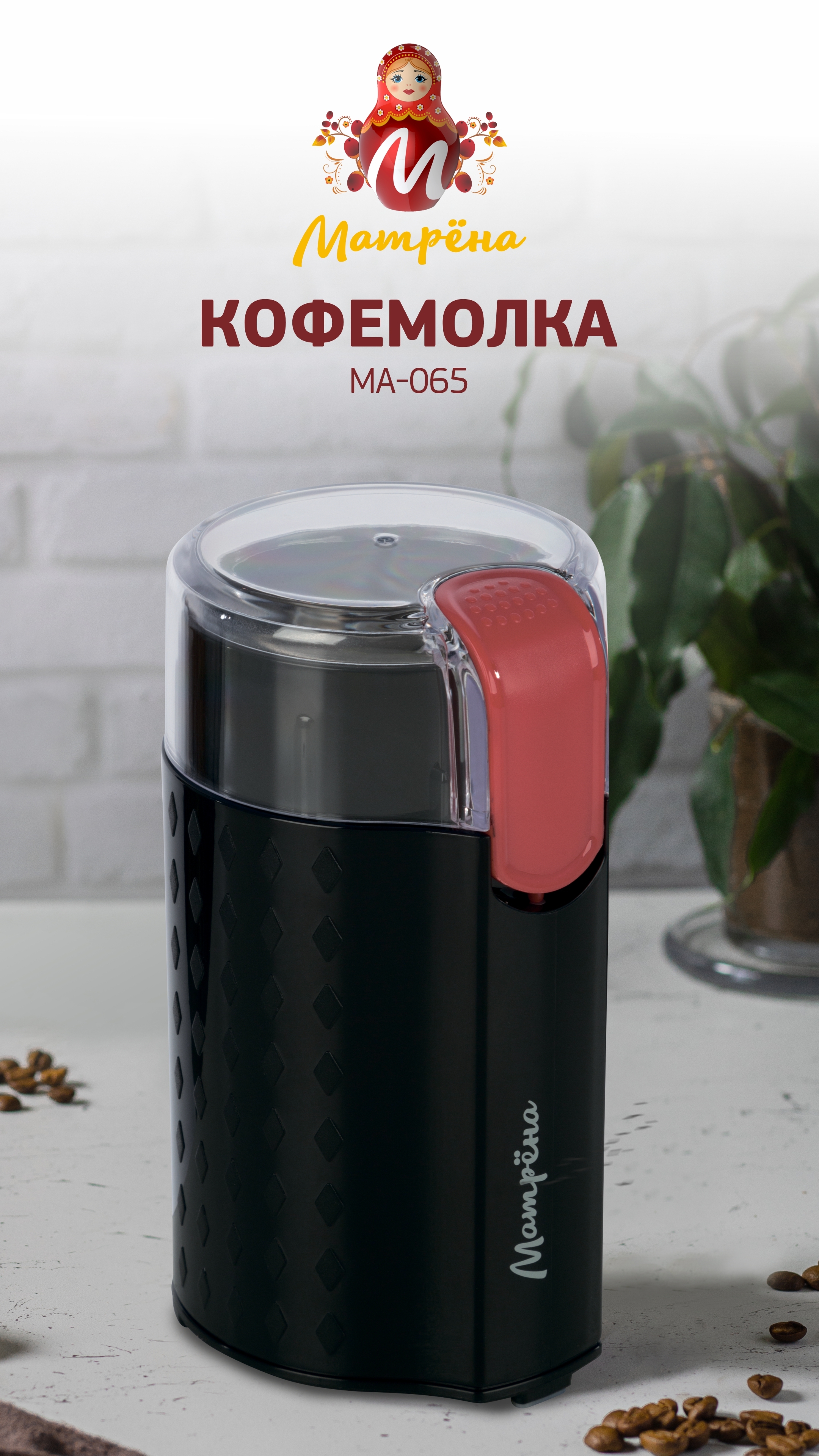 Емкость 50 г кофе в зернах Чаша и ножи из нержавеющей стали Импульсный режим работы Защита от непроизвольного включения Прозрачная крышка Мощность 200 вт Цвет черный