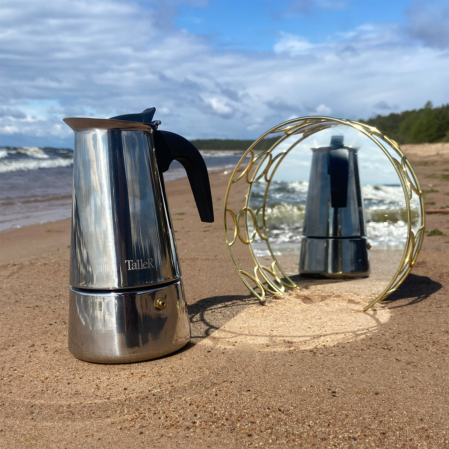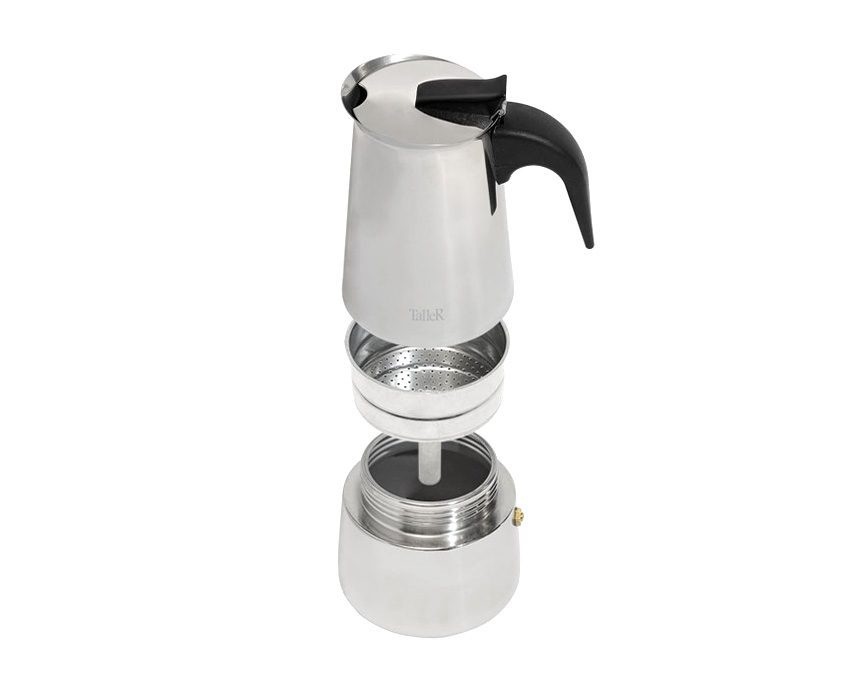 Кофеварка изготовлена из нержавеющей стали.