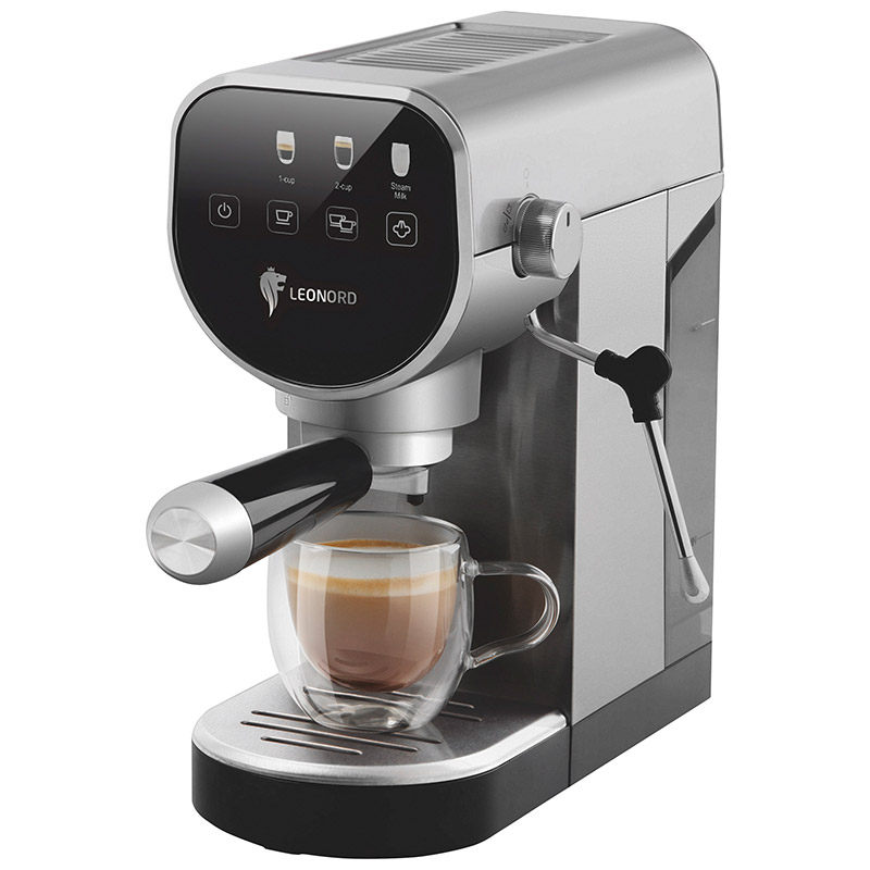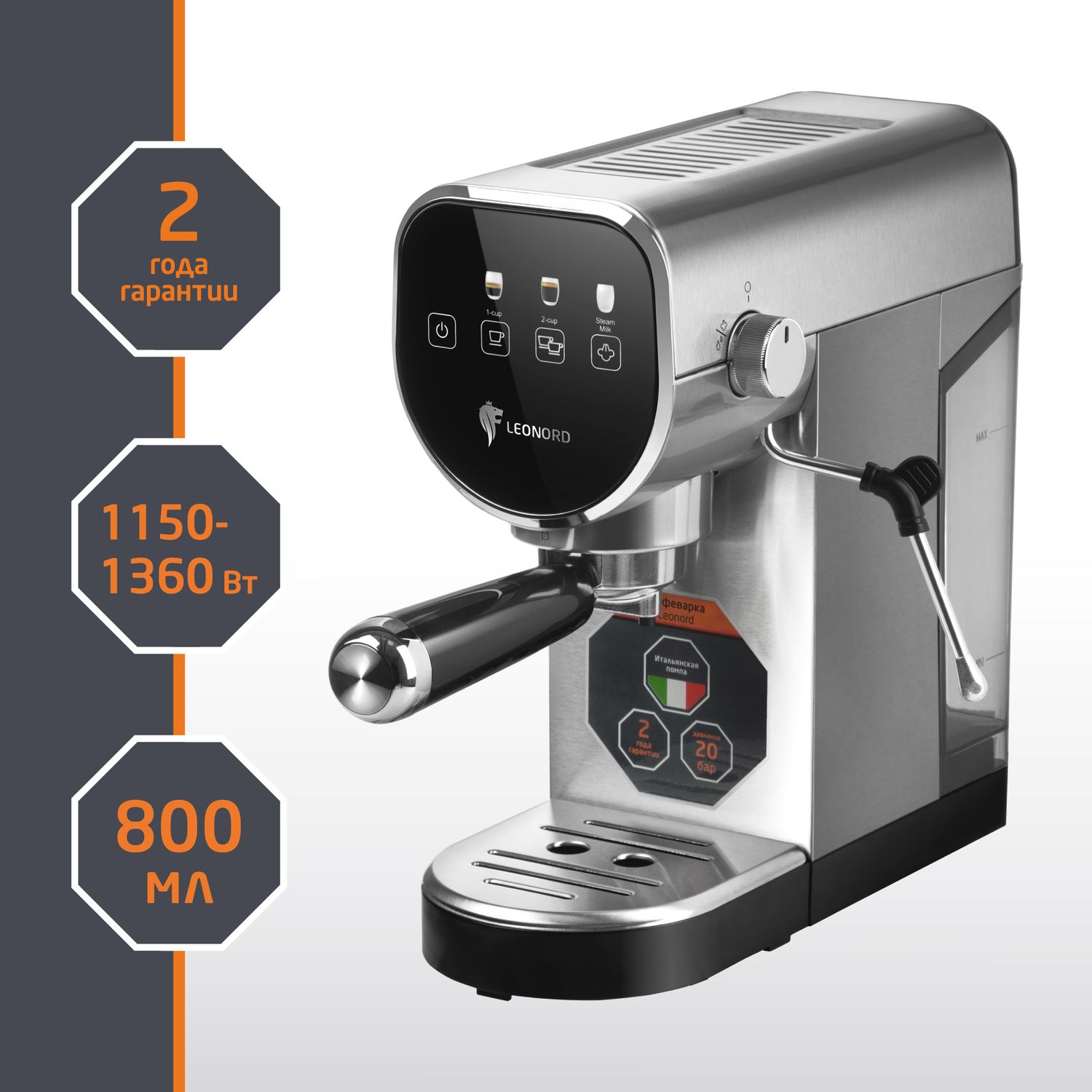 Мощность 1150-1360 Вт Металлический корпус Дисплей Итальянская помпа Давление 20 бар Система мгновенного нагрева Съемный резервуар для воды 800 мл Насадка для вспенивания/нагрева Защита от перегрева и избыточного давления Мерная ложка в комплекте Съемная крышка у каплесборника для удобства чистки Подогрев кофейных чашек