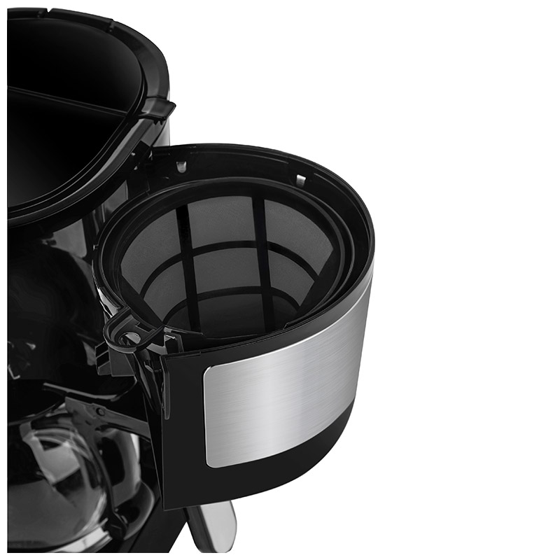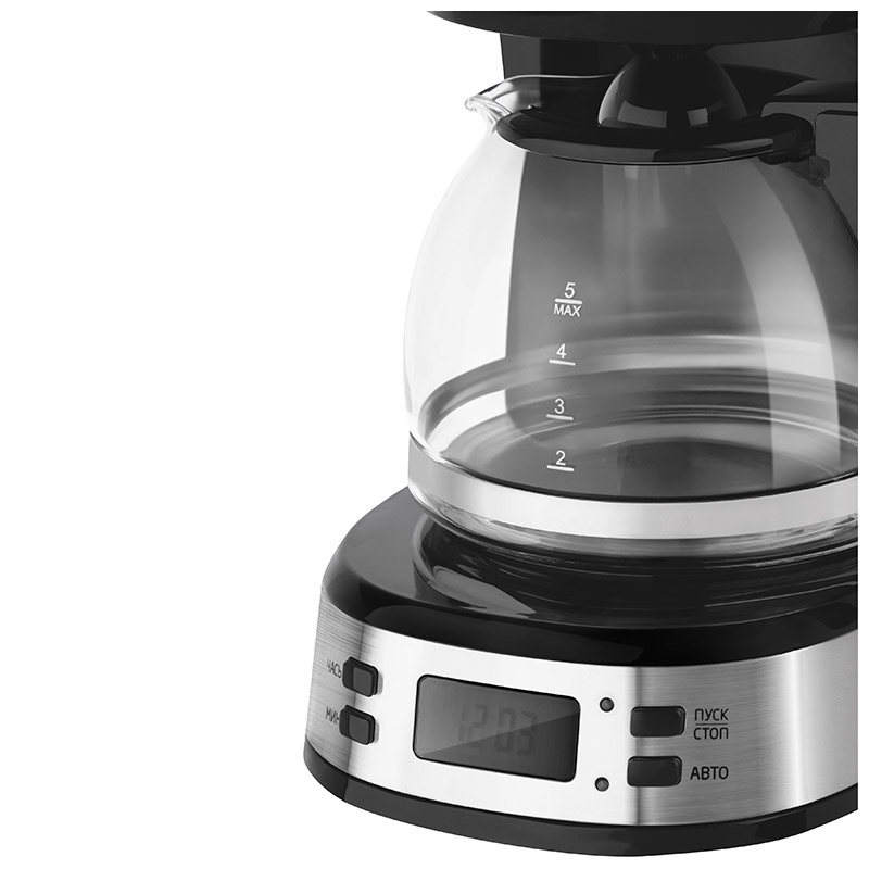 Мощность 600 Вт Объем кофейника и резервуара для воды 600 мл LED дисплей Кофейник из термостойкого стекла Шкала уровня воды Многоразовый фильтр из нейлона Поддержание температуры Автоотключение через 40 минут Противокапельная система Функция отложенного старта Цвет металлик Размер 23,4*15*26,8 Гарантия 2 года Длина шнура 72,3 см В комплекте мерная ложка