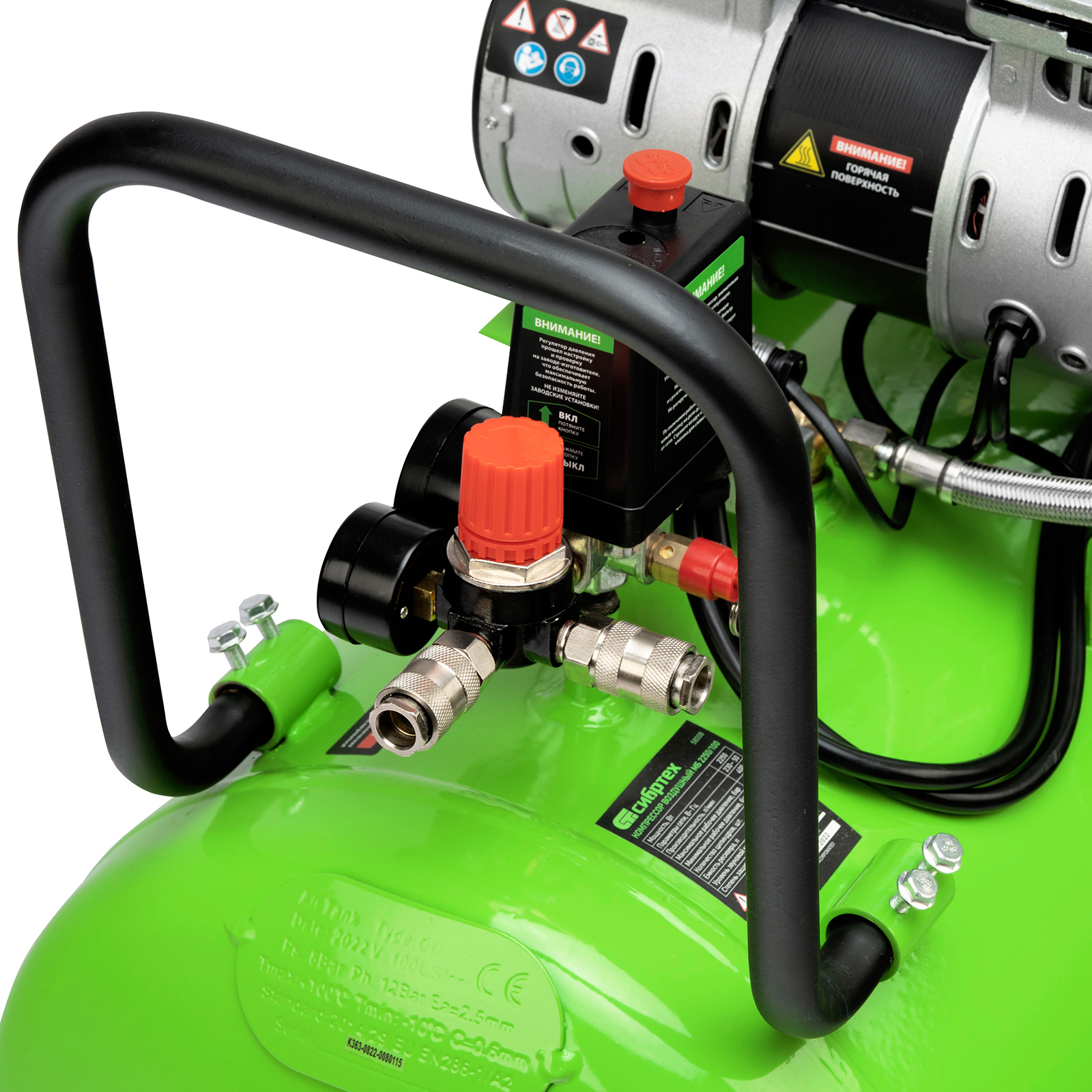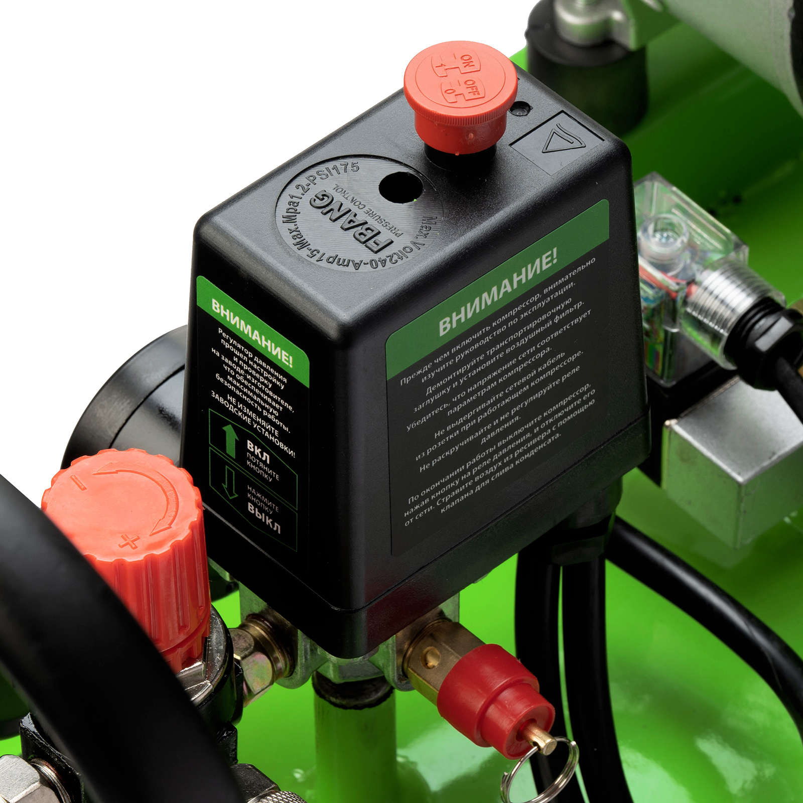 Контроль рабочих параметров — компрессор оборудован механическим манометром для отслеживания давления.