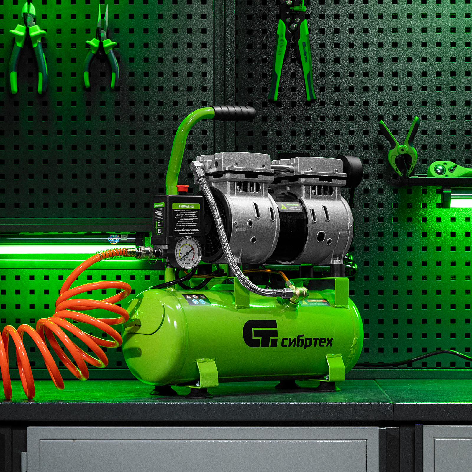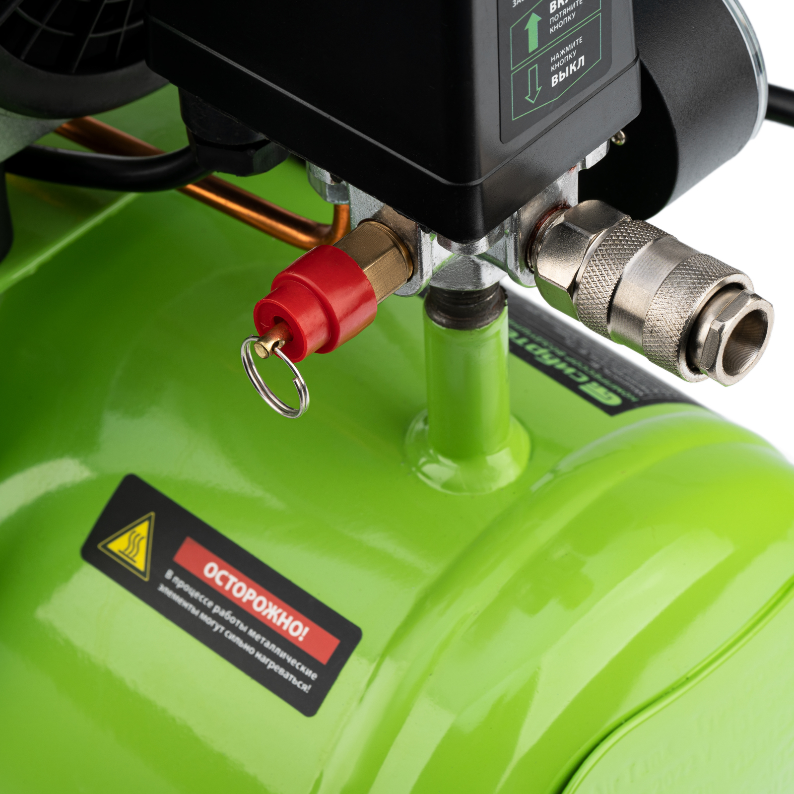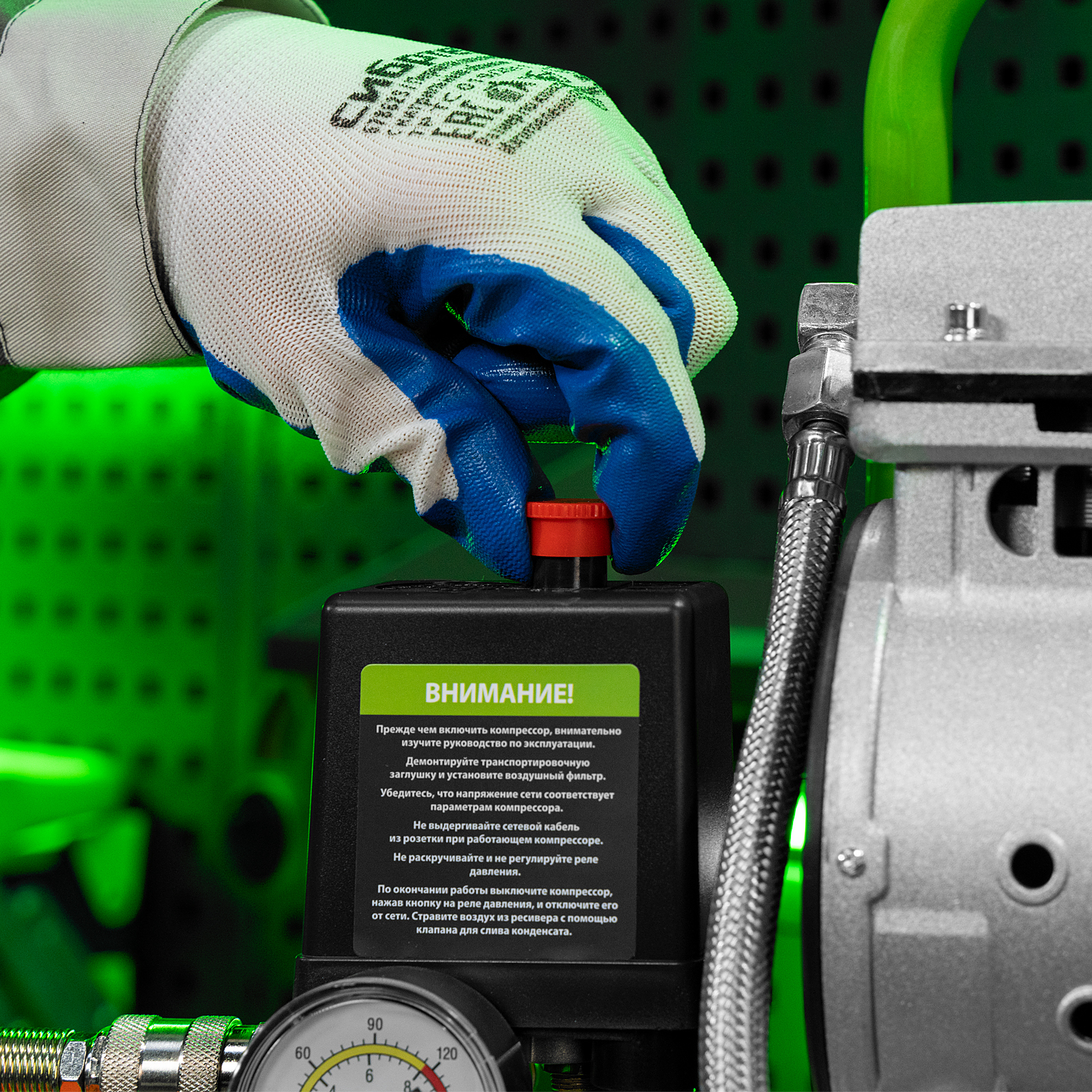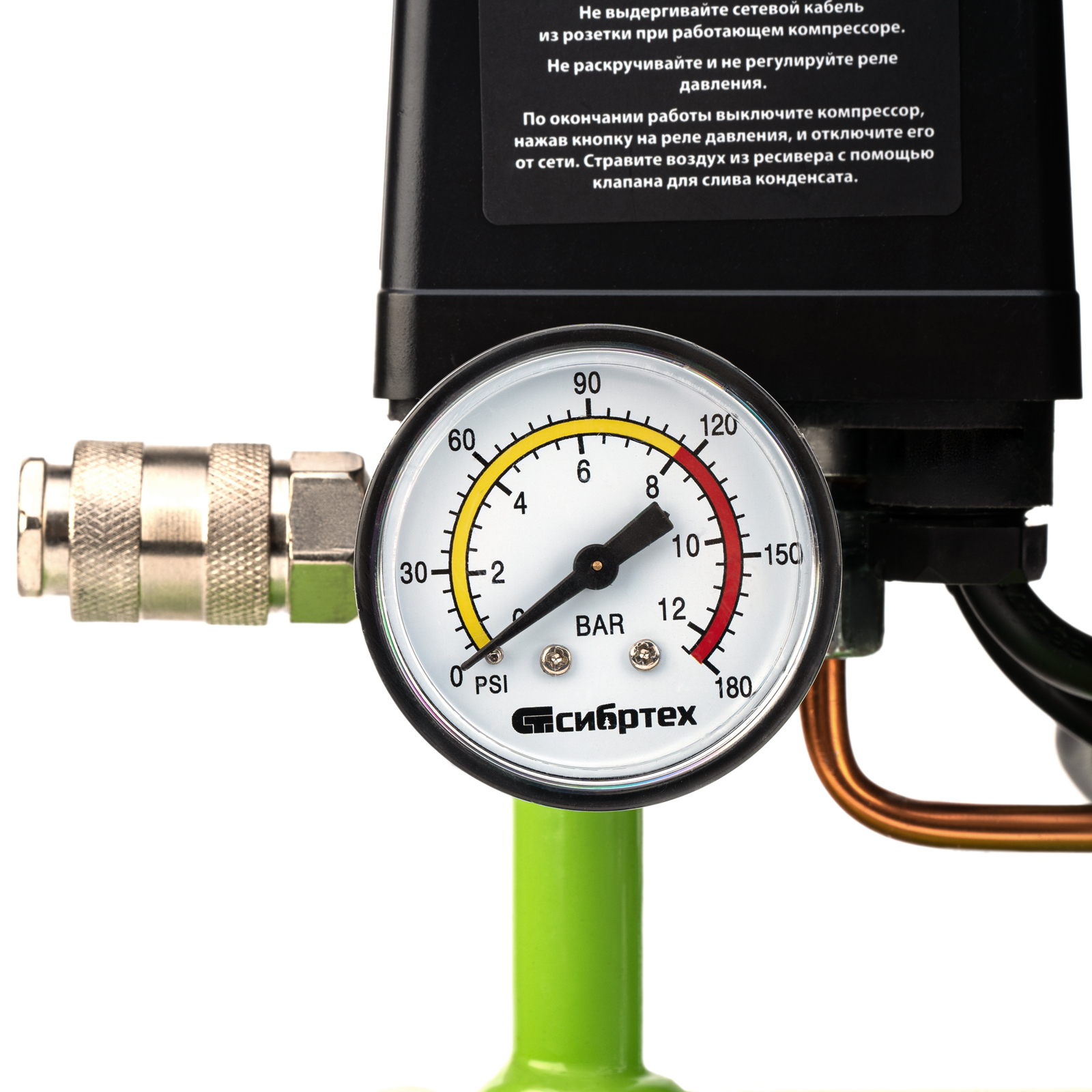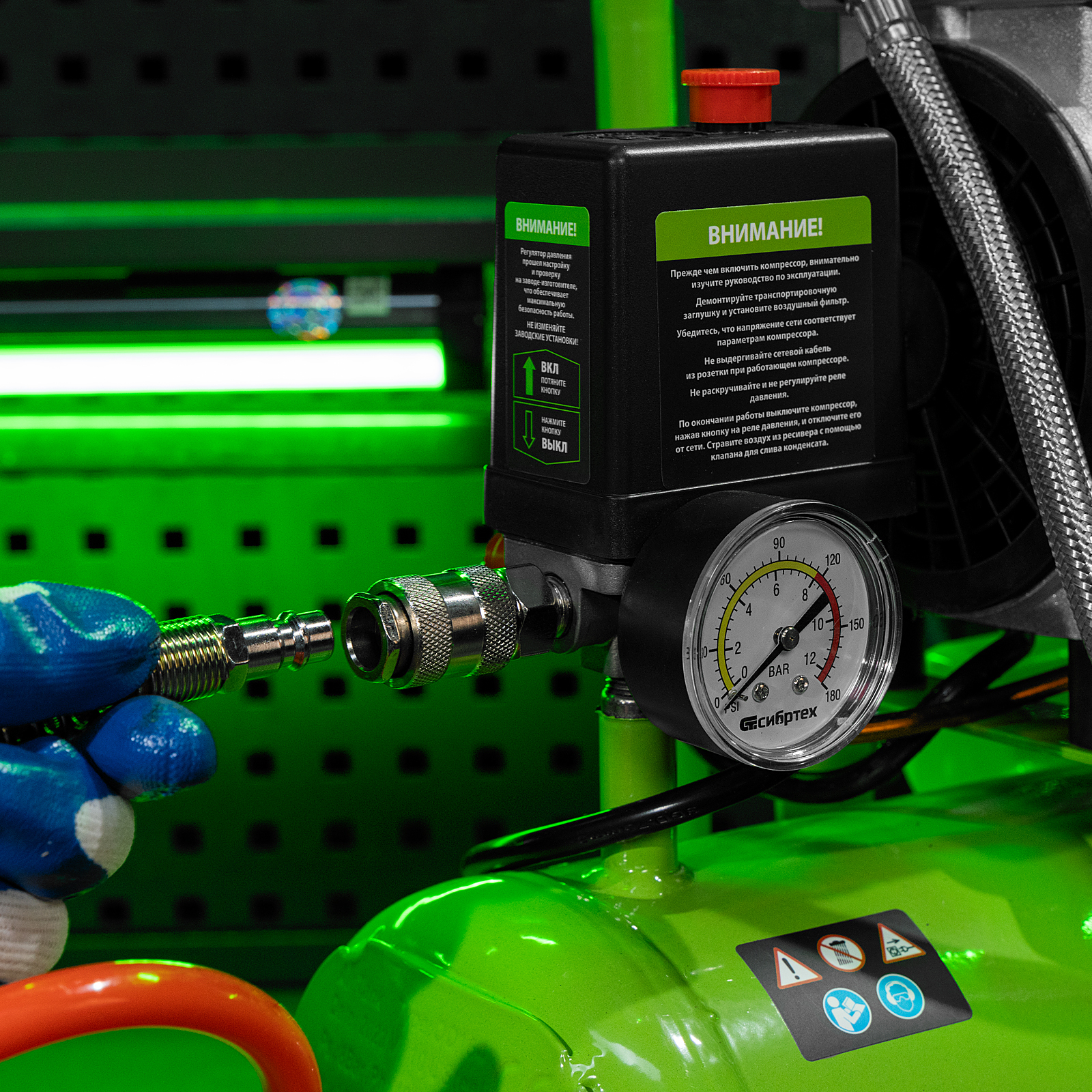 Контроль рабочих параметров — компрессор оборудован механическим манометром для отслеживания давления.