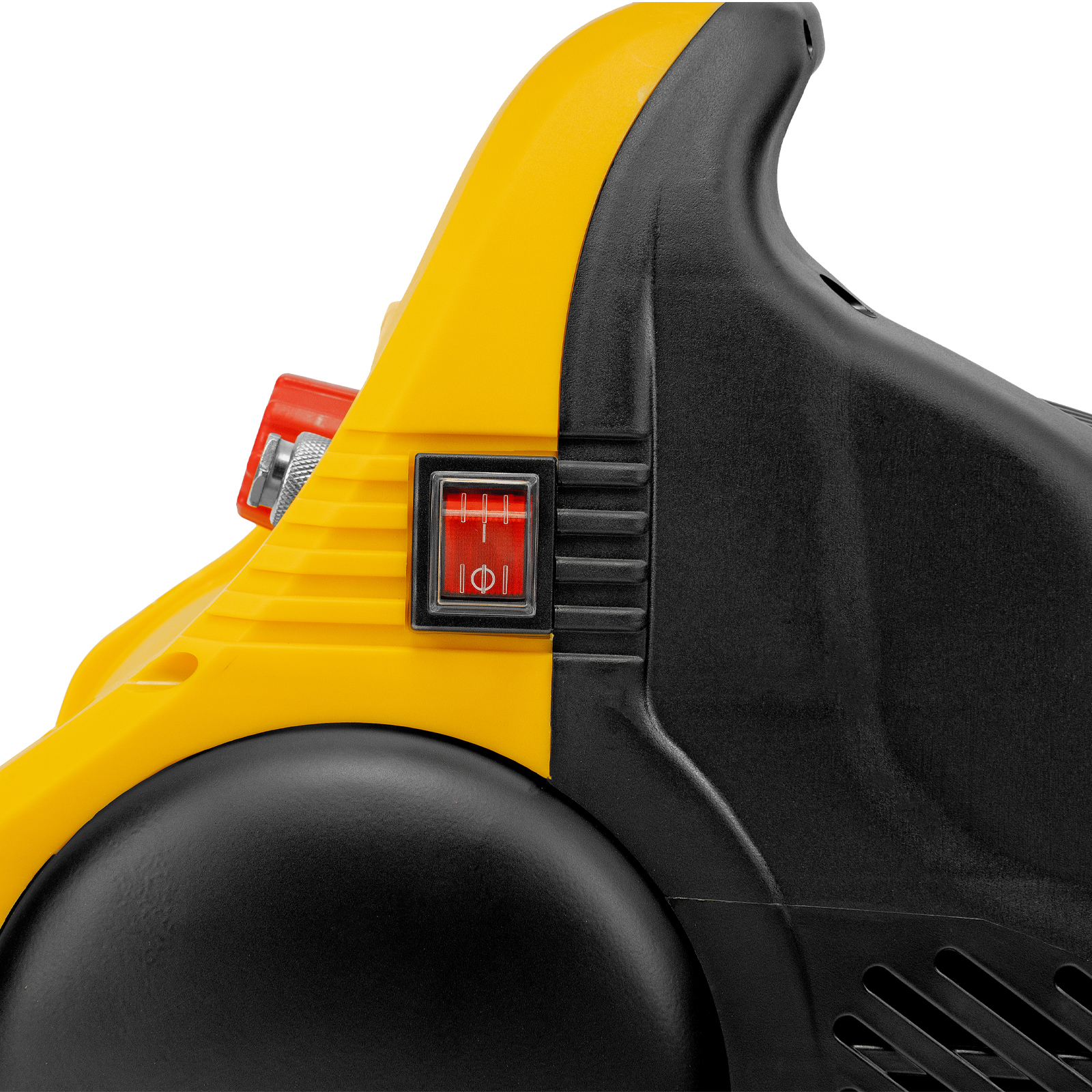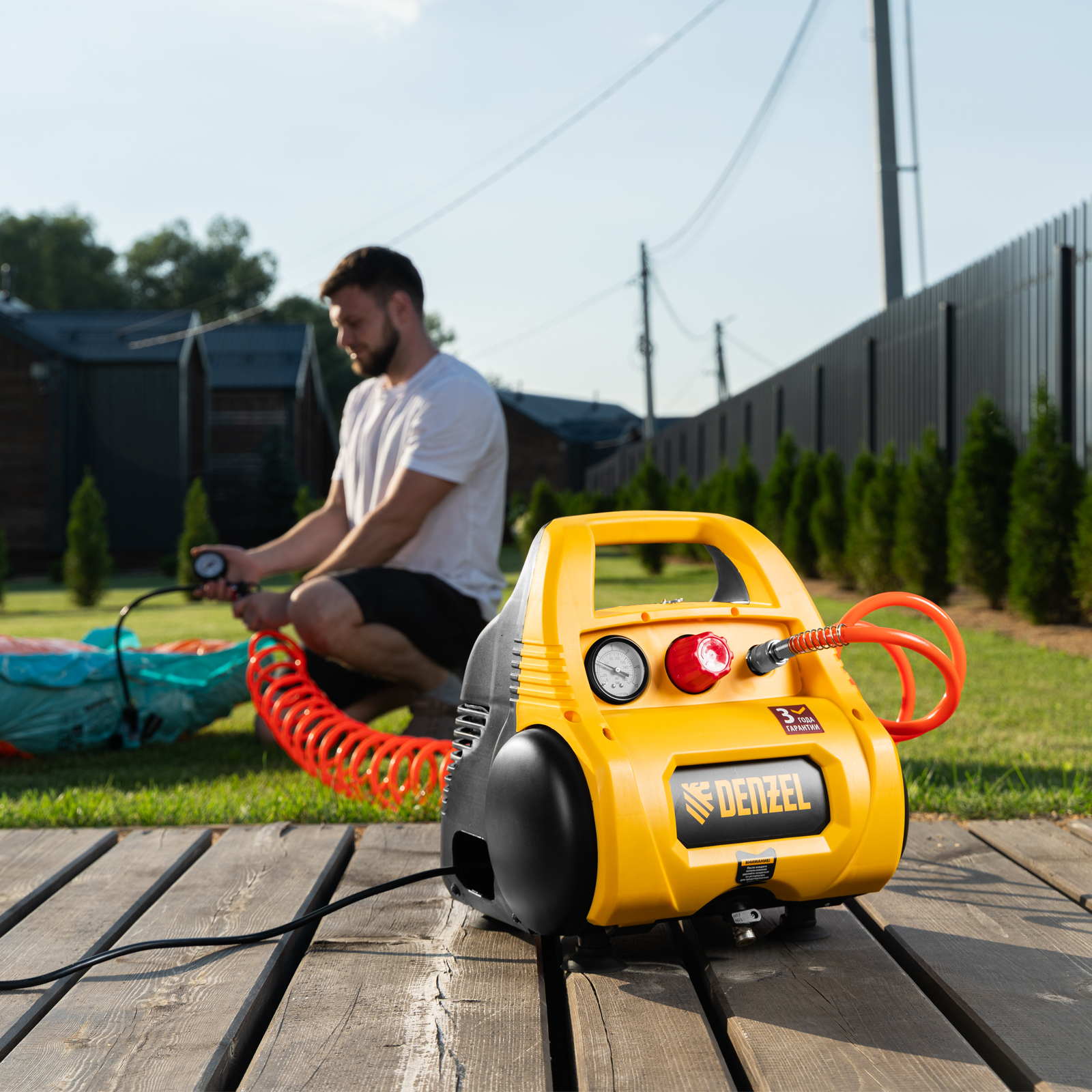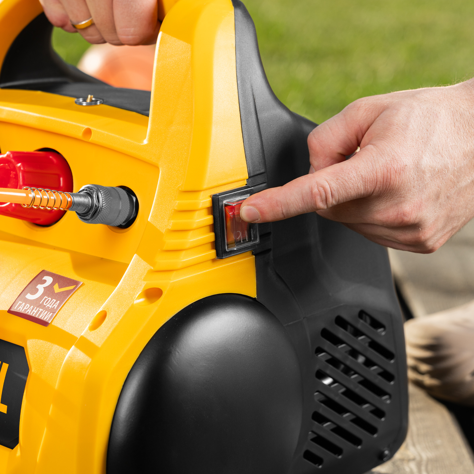Безопасность использования — конструкция корпуса исключает вероятность ожога об двигатель и компрессорную головку, поскольку все элементы находятся внутри.