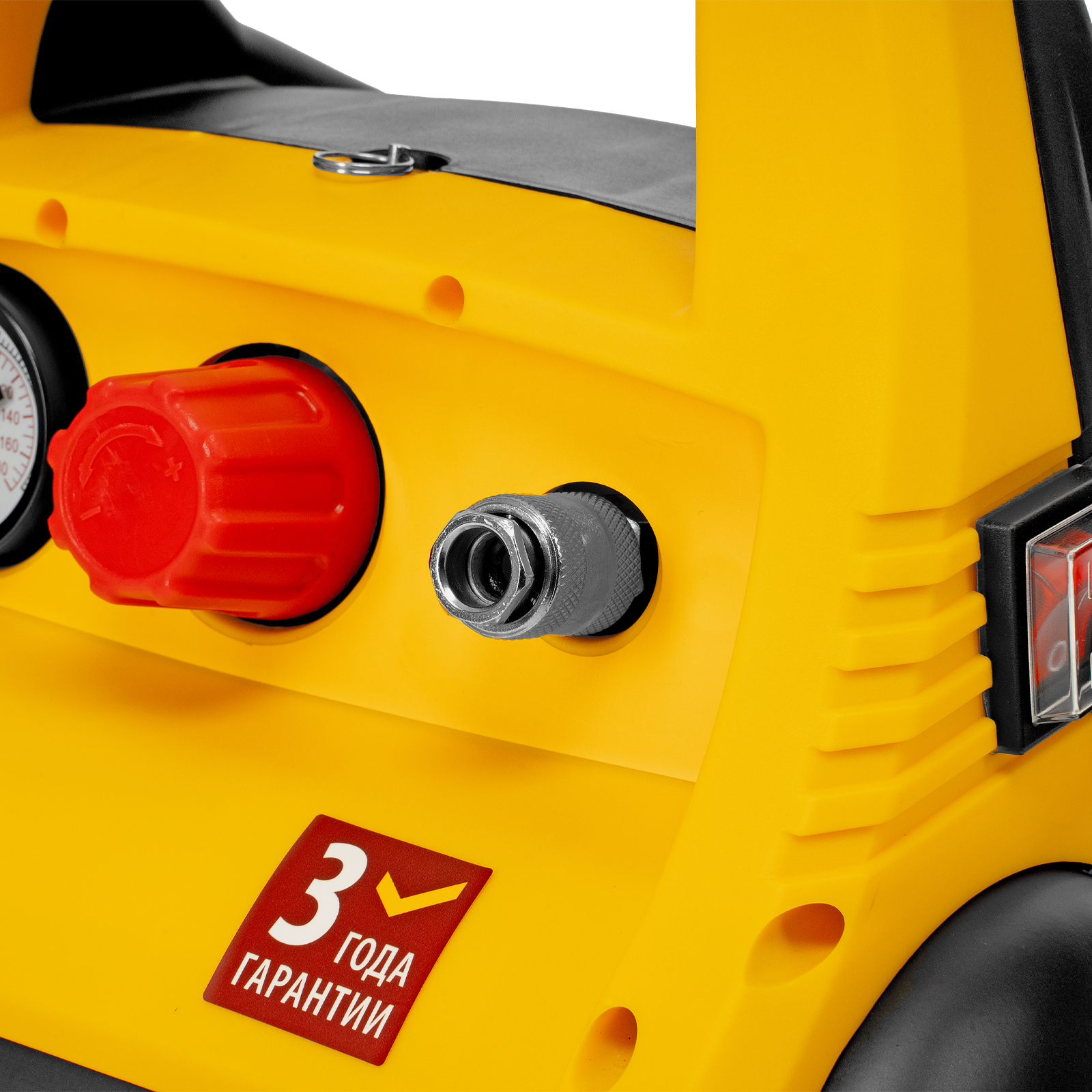 Предохранительный клапан — изделие надежно защищено от превышения давления в ресивере, что упрощает работу и продлевает срок службы.