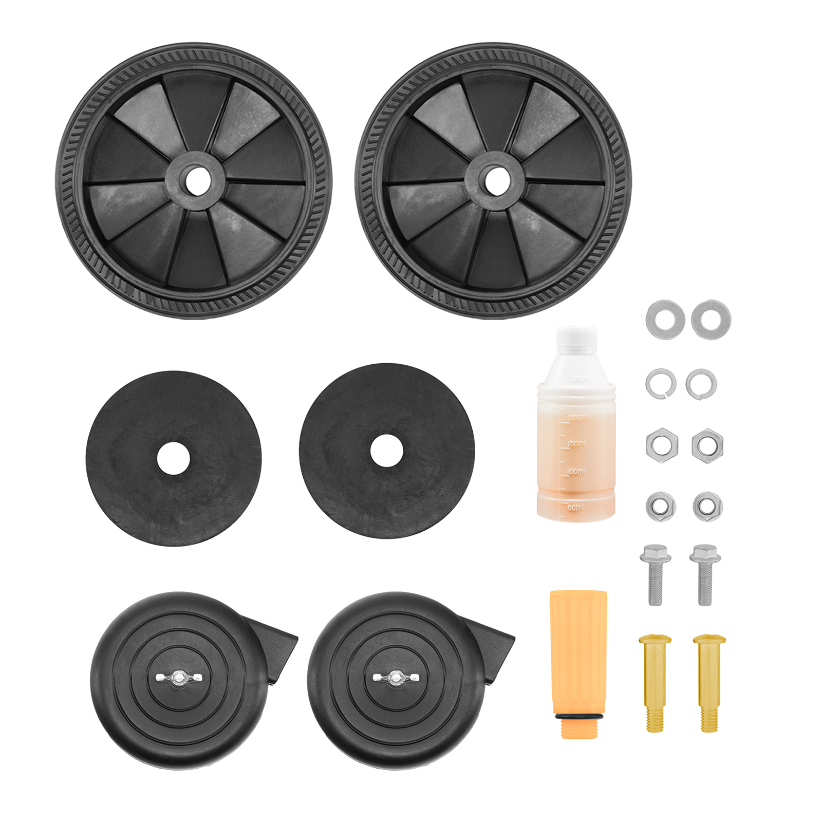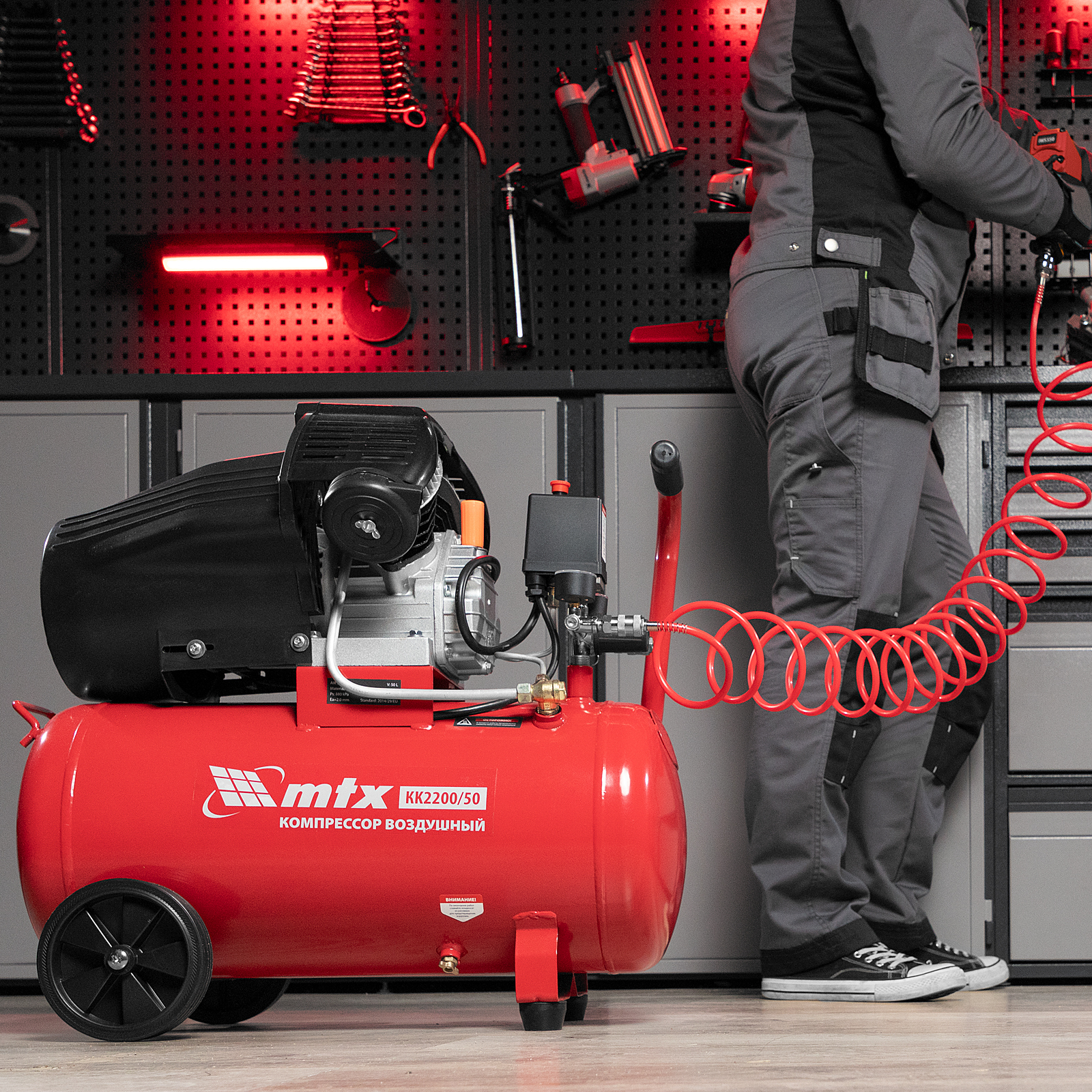 Мобильность — благодаря колесам и рукоятке компрессор удобно разворачивать и перемещать по рабочей площадке.