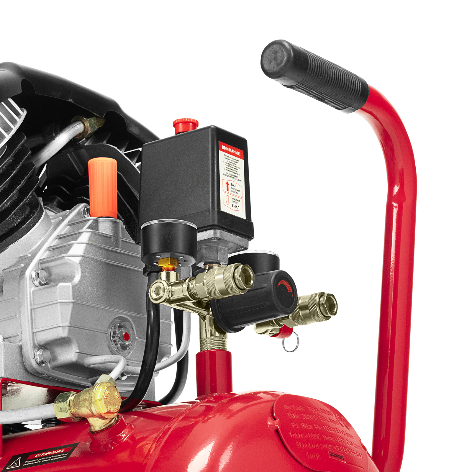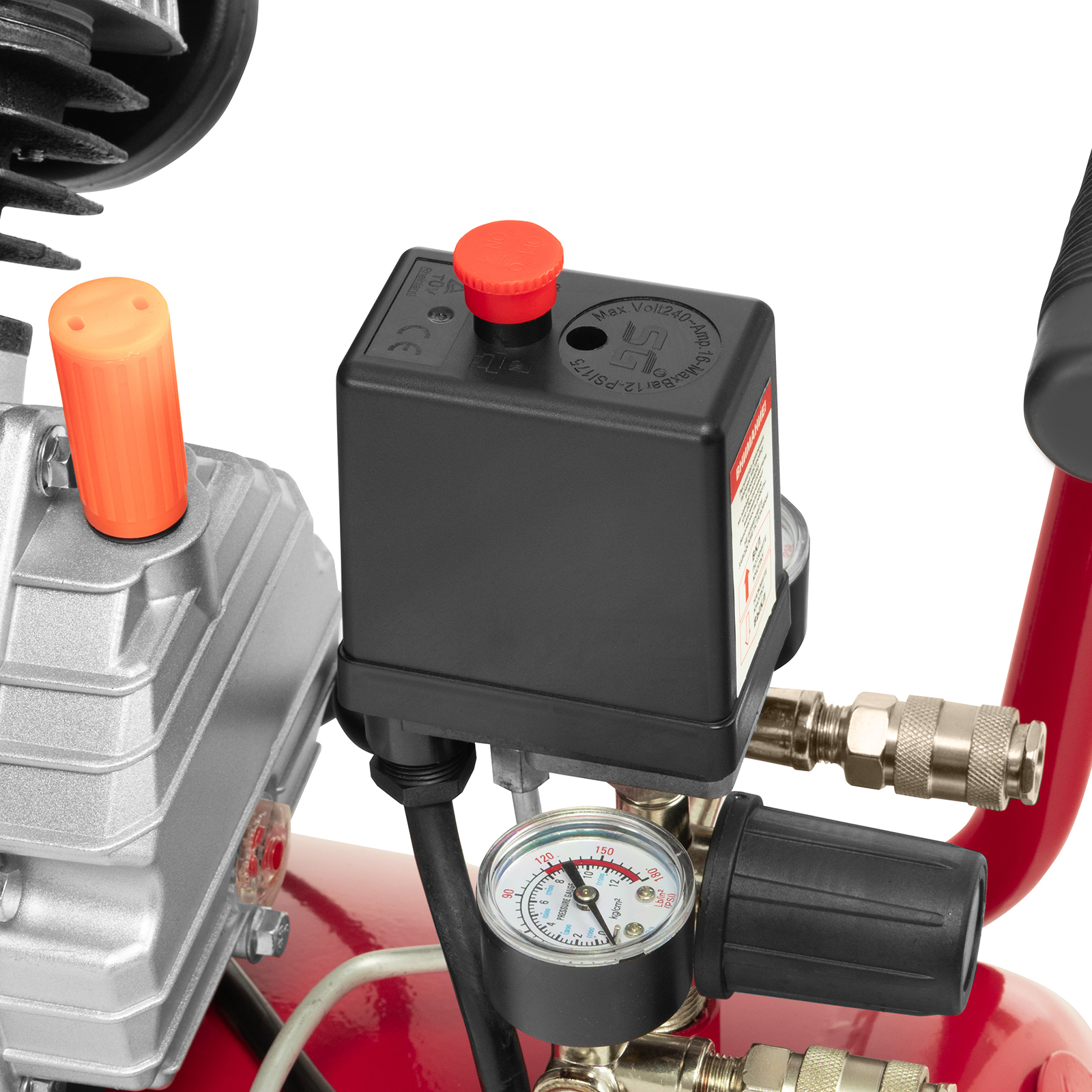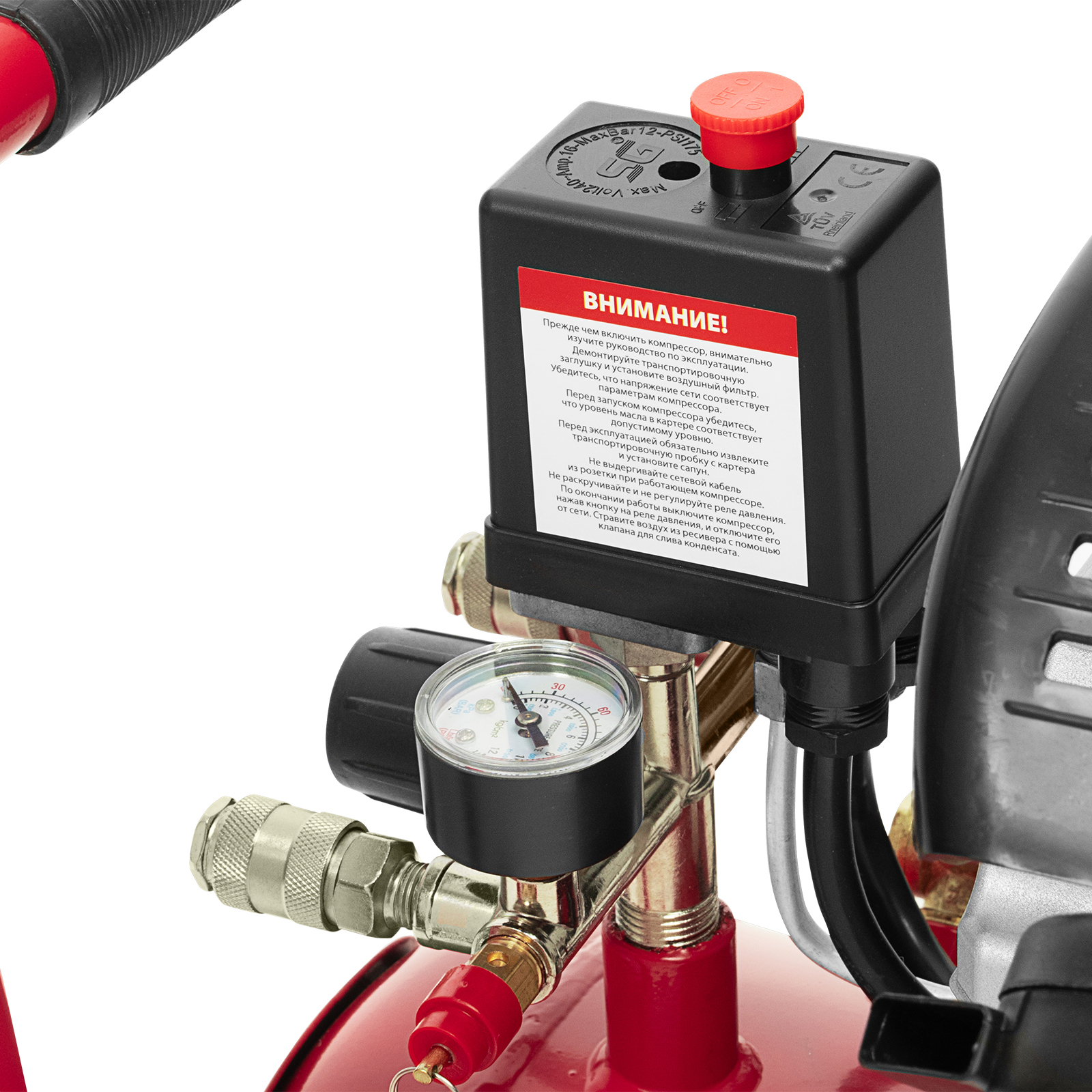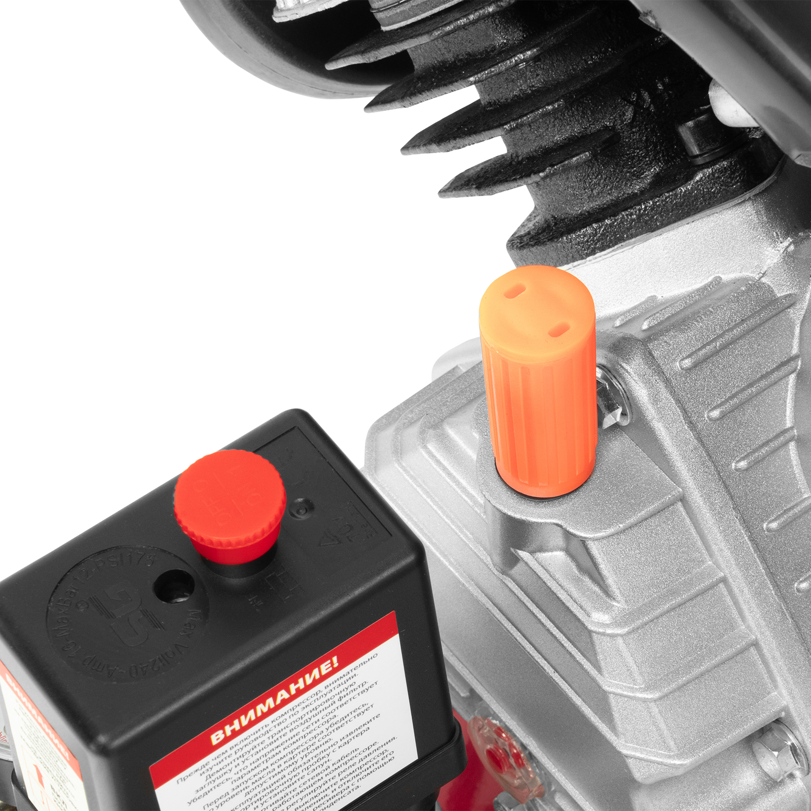 Автономная работа — прессостат обеспечивает автоматическую остановку двигателя по достижении максимального рабочего давления и запуск при падении давления до минимального уровня.