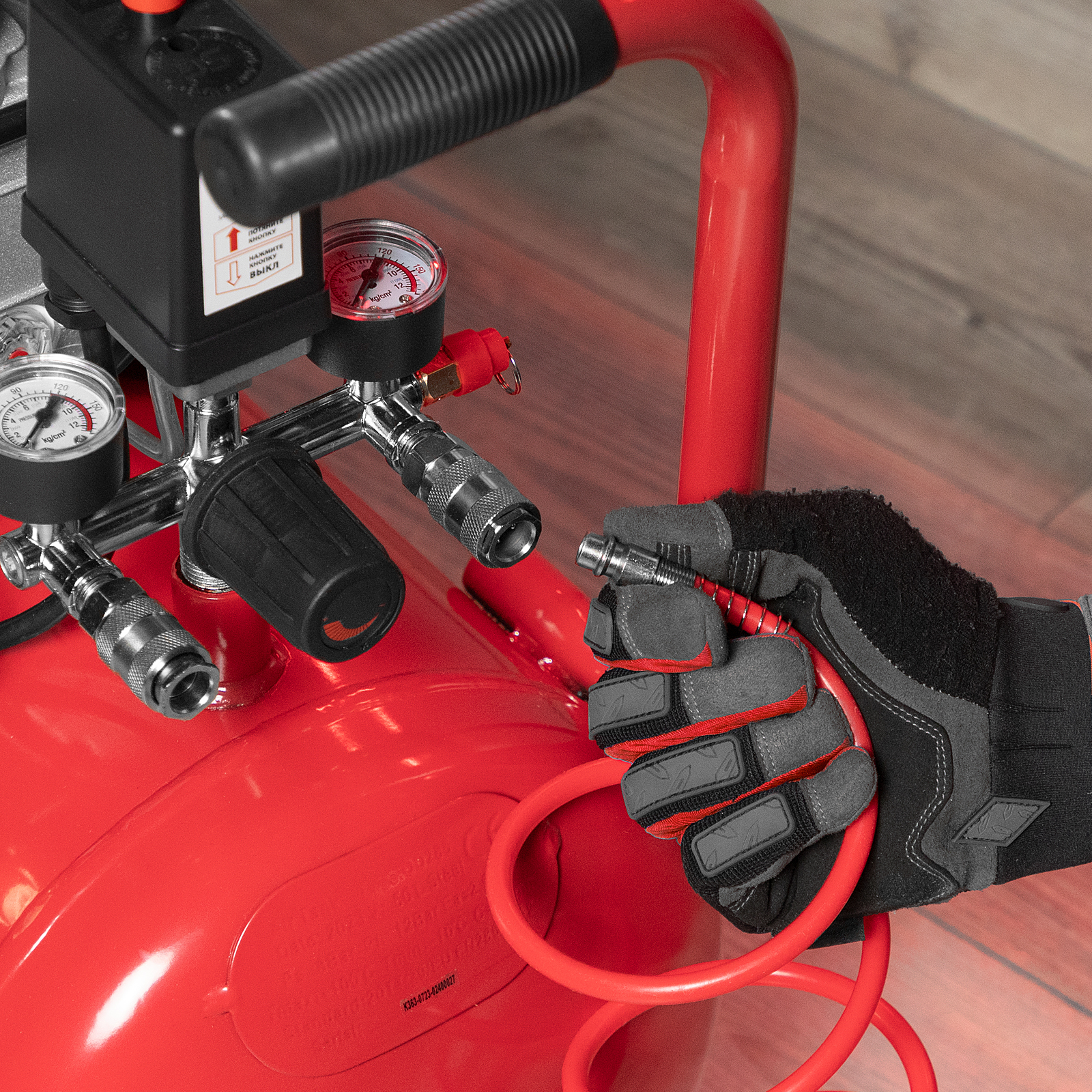 Удобный контроль рабочих параметров — 2 манометра и регулятор позволяют отслеживать и корректировать давление для корректной работы пневмоинструмента.