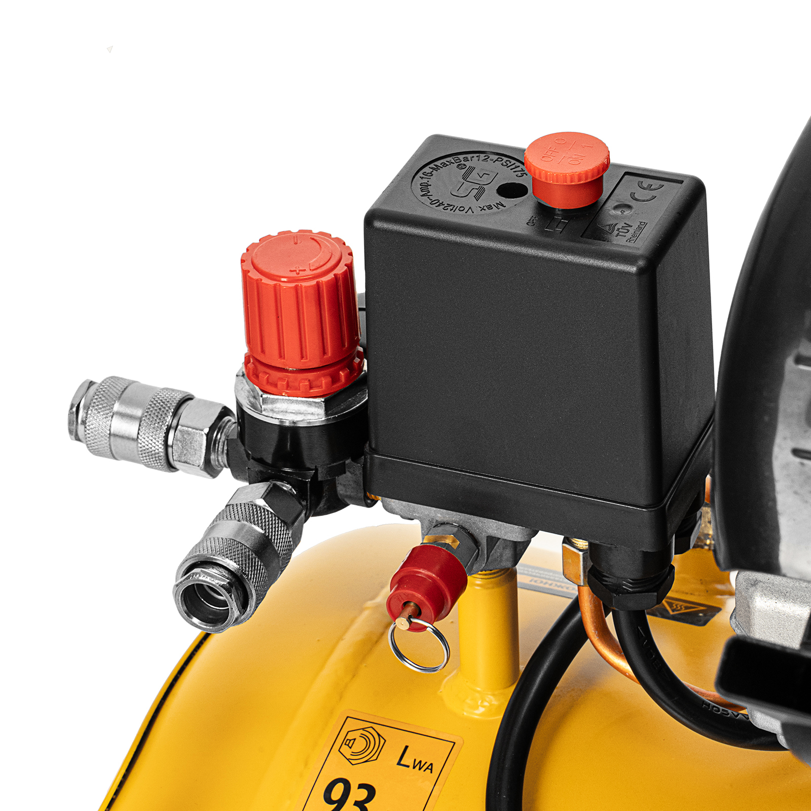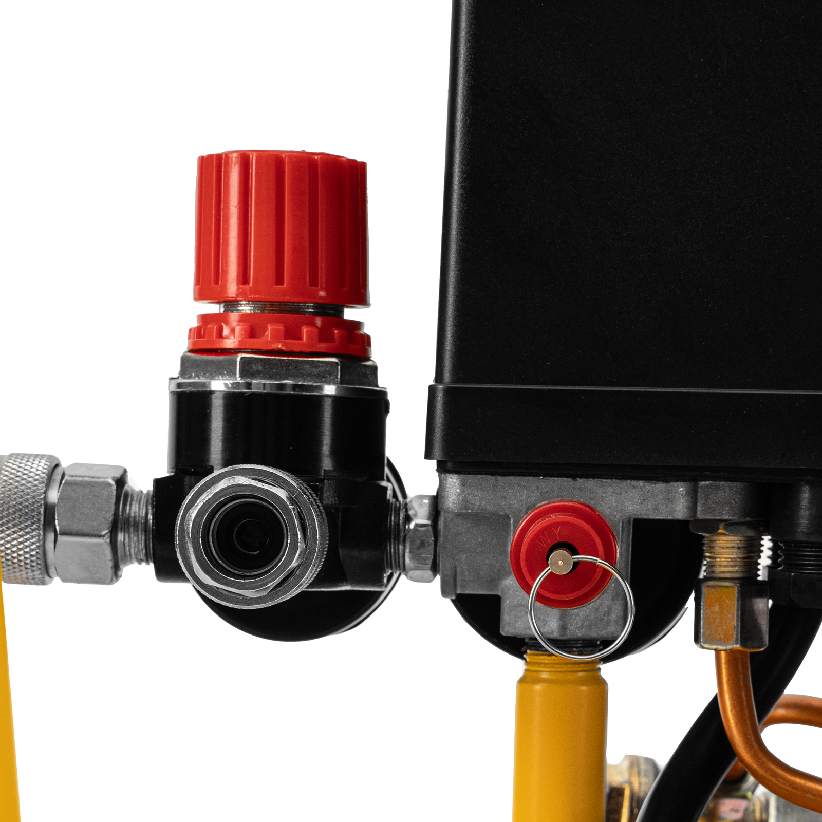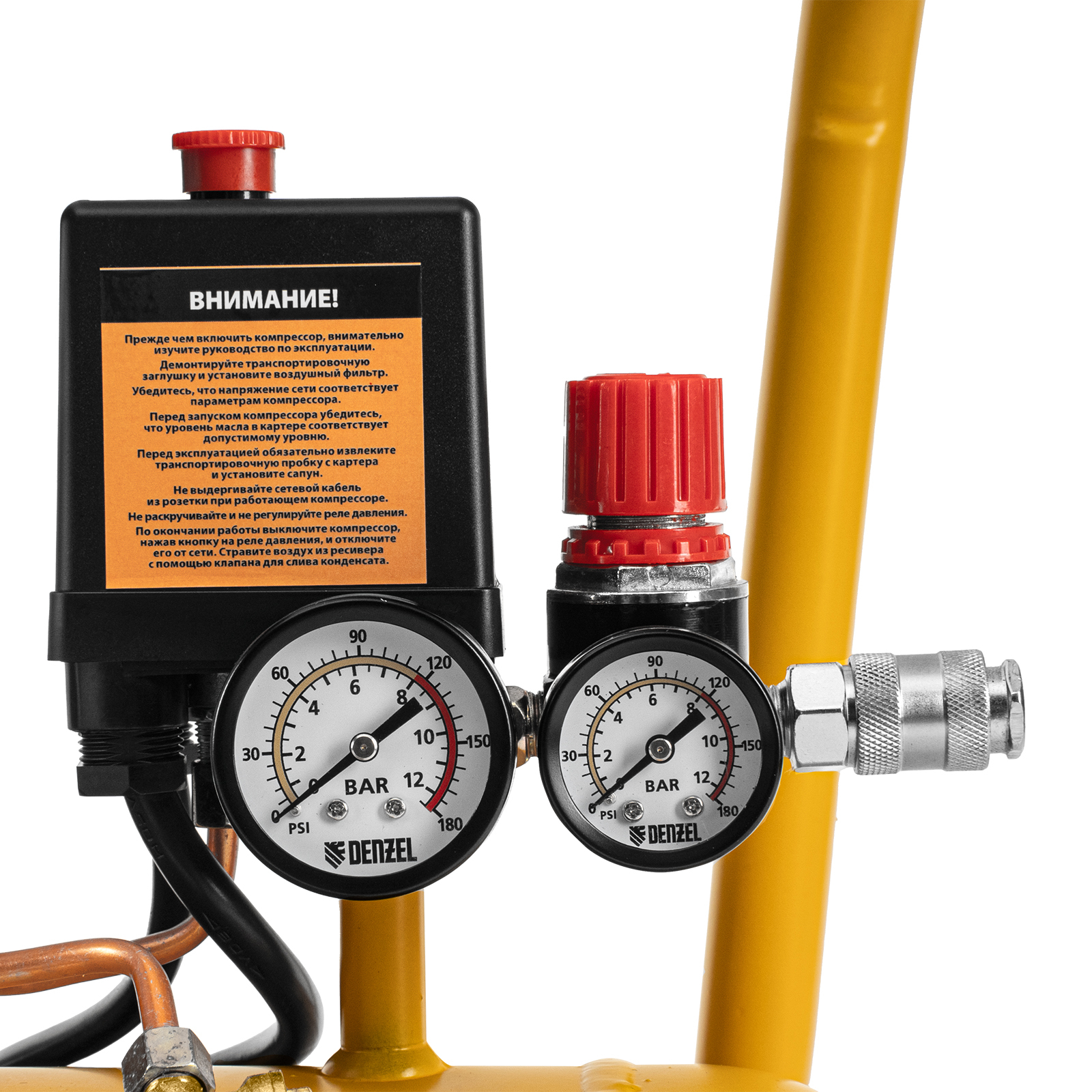 Контроль давления и расхода воздуха — компрессор оснащен регулятором и двумя манометрами.