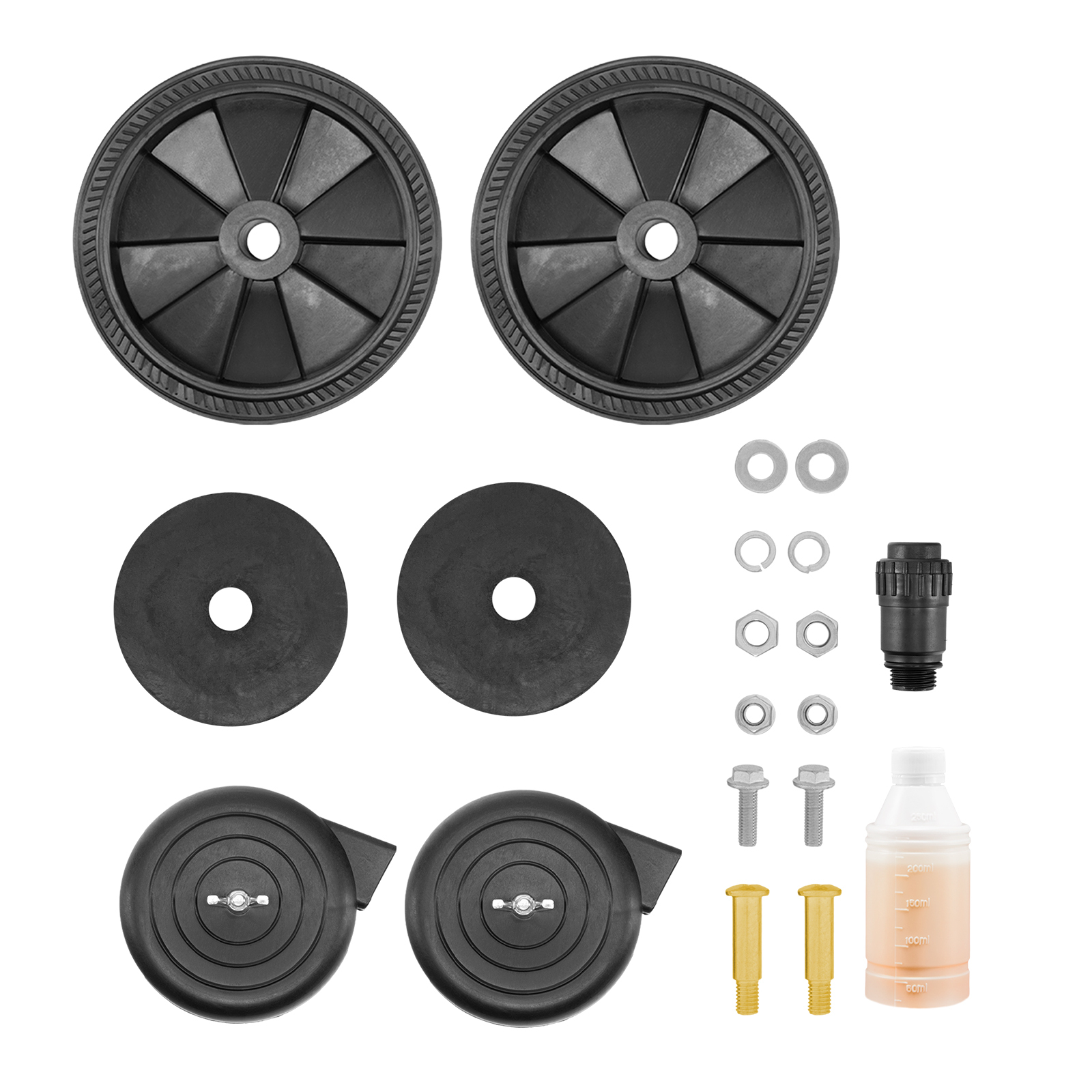 Удобное перемещение по рабочей площадке — конструкцией предусмотрены колеса и рукоятка.