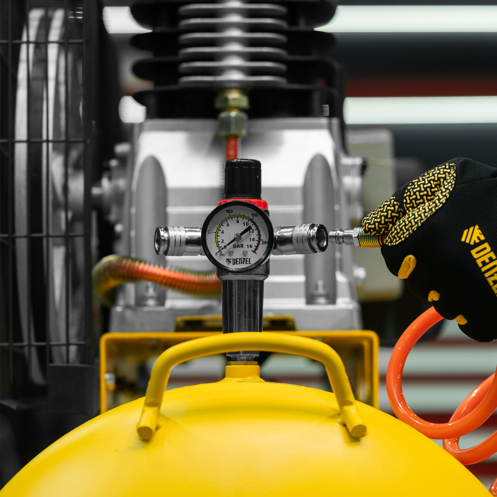 Автоматический спускной клапан — лишнее давление быстро сбрасывается без вреда для компрессора.