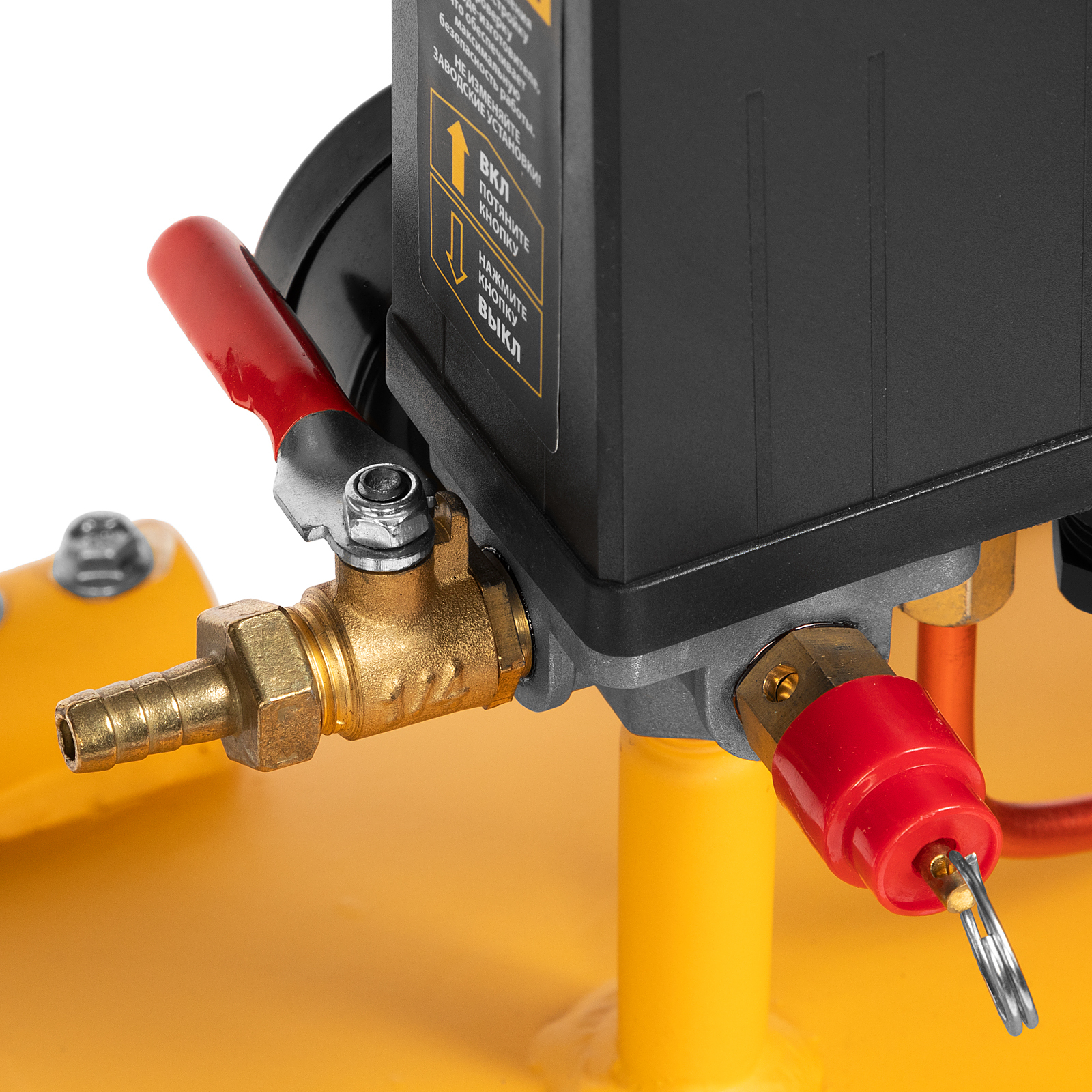 Клапан для слива конденсата — скопившаяся за день влага и оставшийся воздух быстро удаляются из ресивера, что обеспечивает защиту от коррозии.
