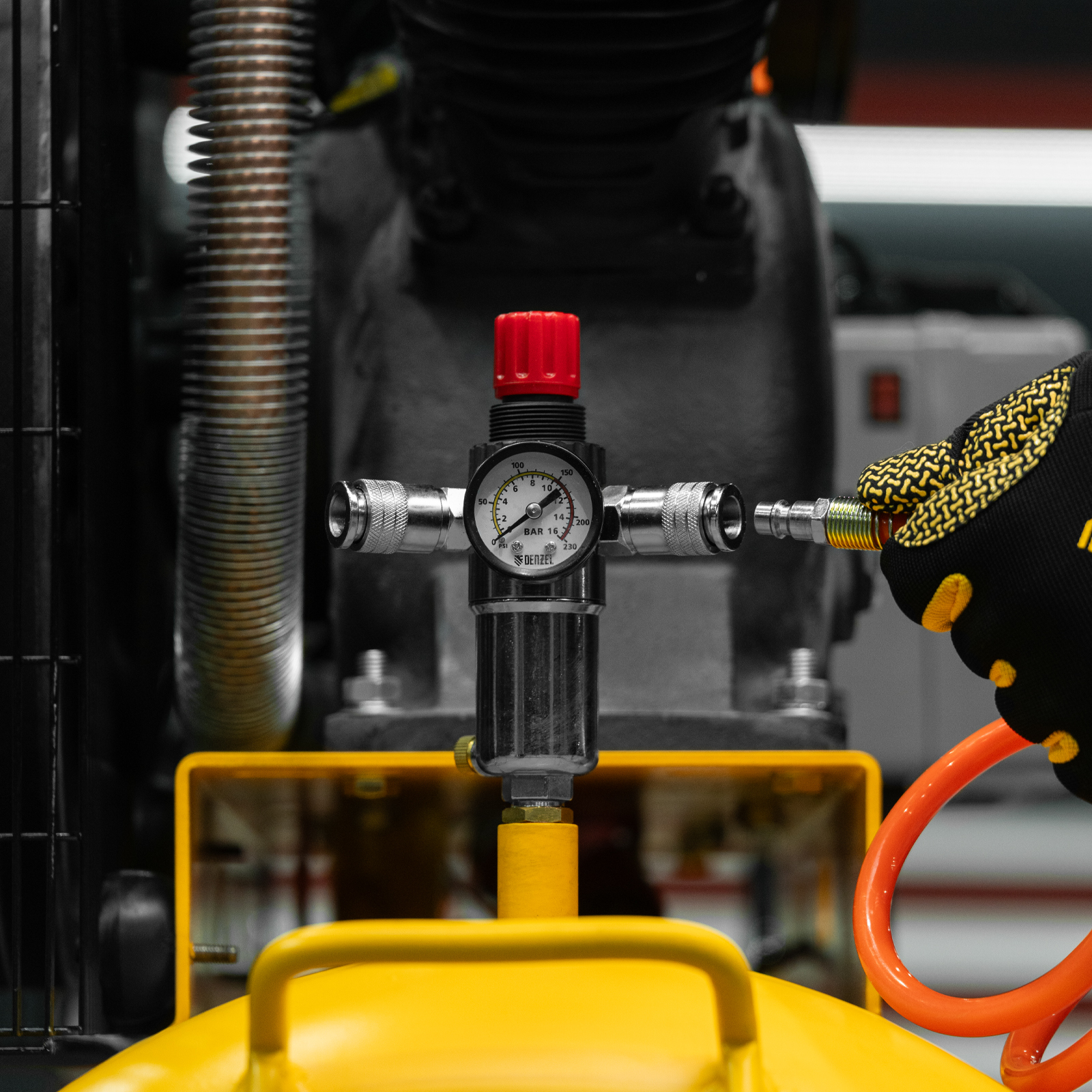 Воздушный компрессор Denzel BCV 4000-T/200 58120 с ременным приводом, мощностью 4,0 кВт и производительностью 690 л/мин, с ресивером объемом 200 л, — источник сжатого воздуха для работы с пневмогайковертом, пневмодрелью, краскопультом, углошлифовальной машиной или другим пневмоинструментом. Двигатель с медной обмоткой обеспечивает стабильную работу в течение длительного времени. Для подключения инструмента предусмотрено 2 быстросъемных коннектора Рапид (Евро) и штуцер «елочка» с краном. Специальный порт позволяет подключить напрямую дополнительный ресивер или пневмомагистраль. Компрессор отличается высокой производительностью и будет полезен на строительной площадке и станции техобслуживания.